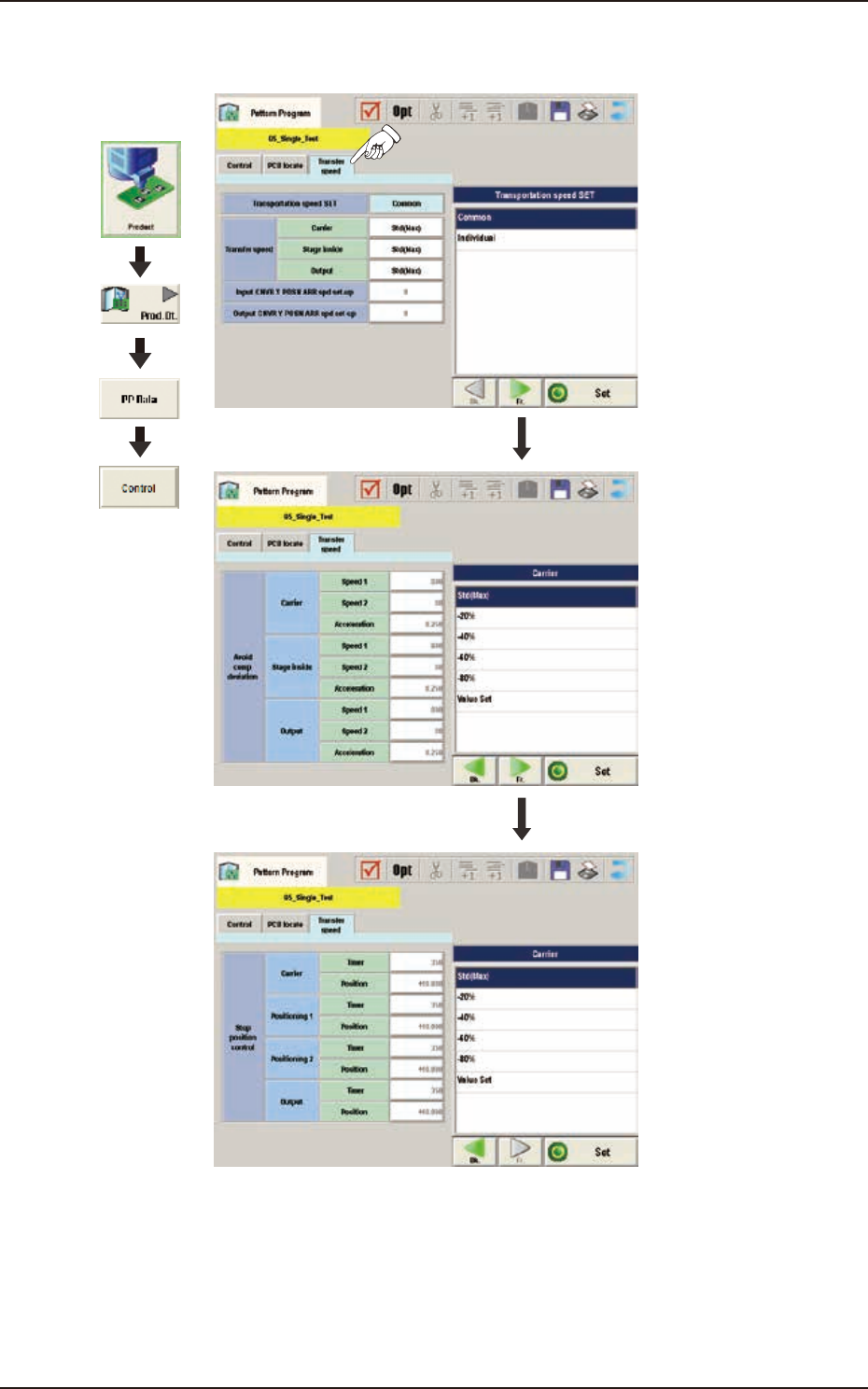 Value Set : When selected, any speed level is set freely for the PCB transfer.