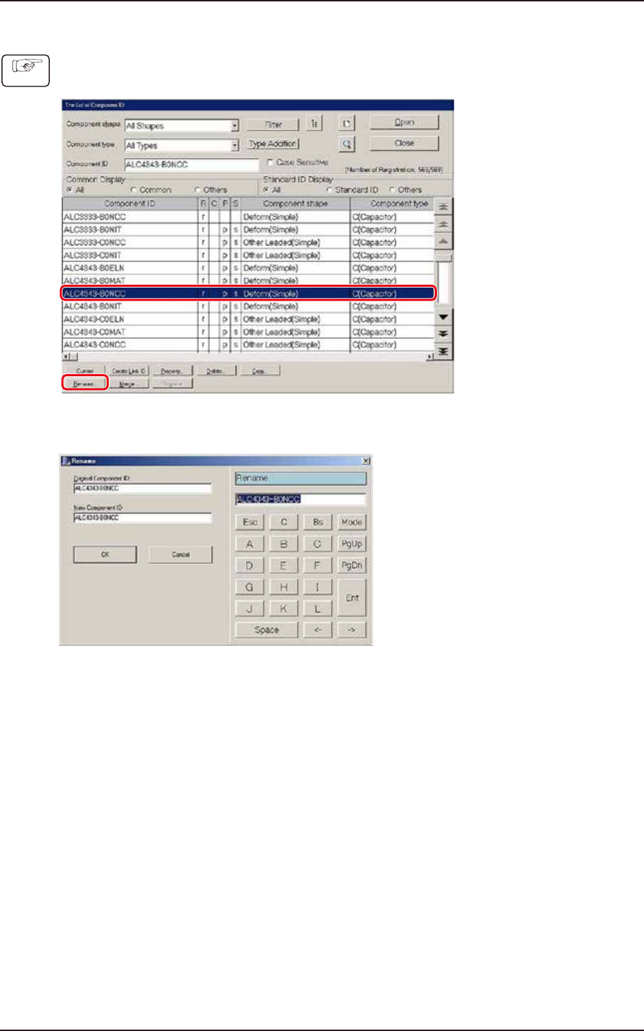 1.2 Basic Operations in "Selection of component ID" Window