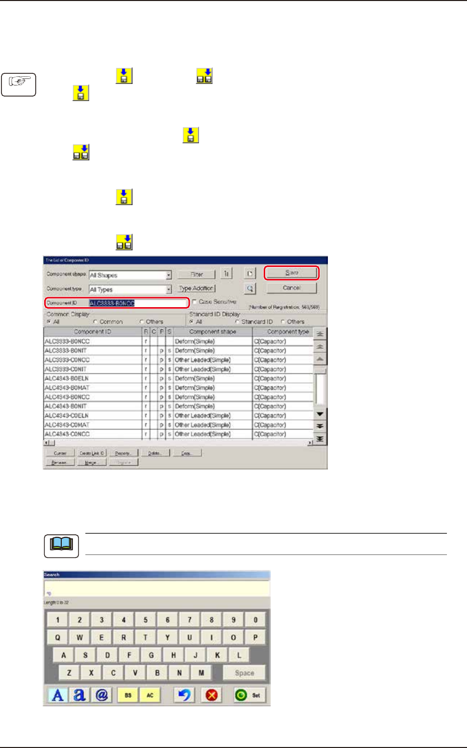 (Save As)] icon. (The "List of Component ID" window appears.)