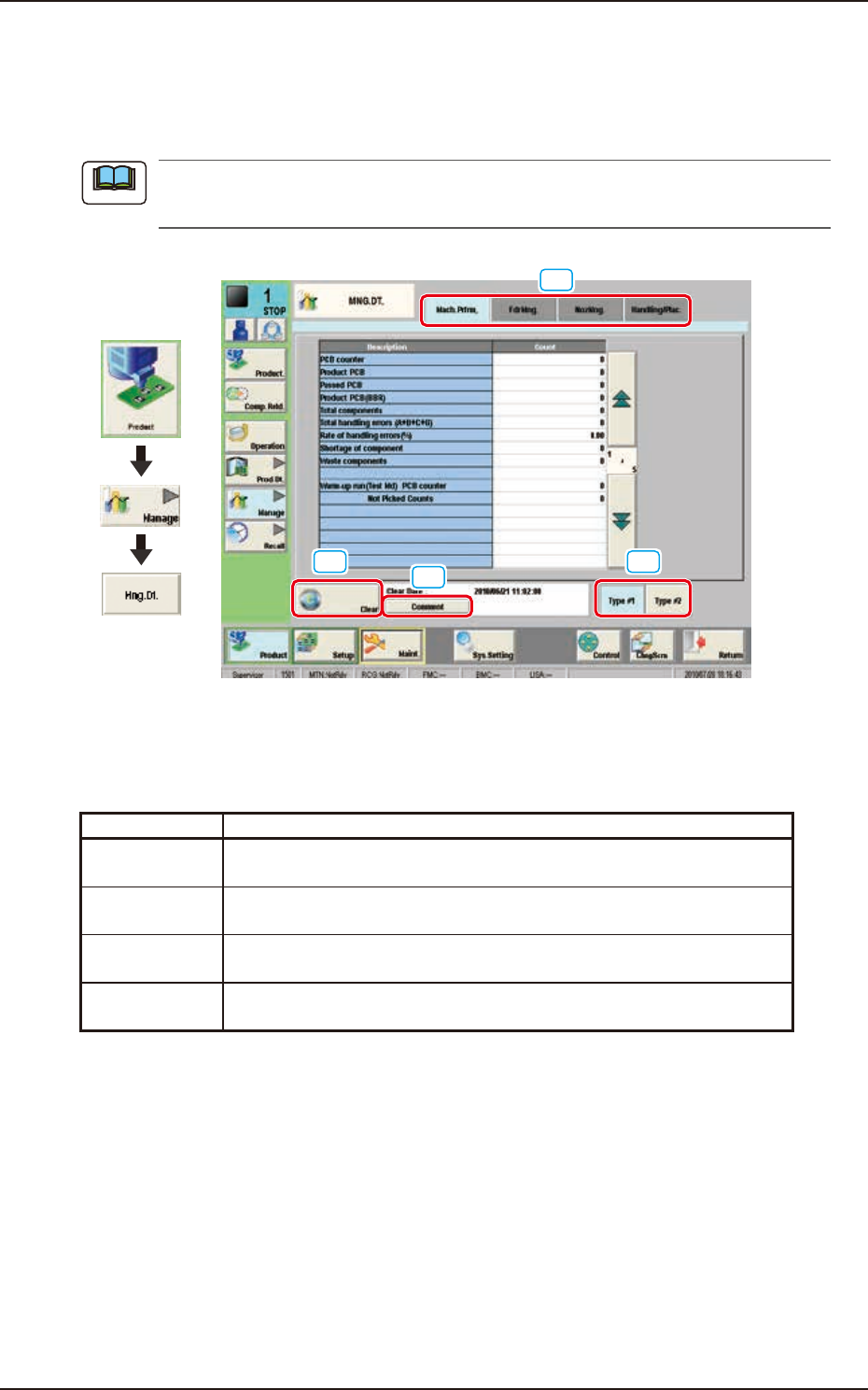 EUKYX 4-2 199-2100 2. "MNG.DT ." Window 2. " MNG .D T . " Wind o w The correspondin g wi ndow enab les the operator to con firm the production per formanc e data cov erin g the whole mac hine per form…