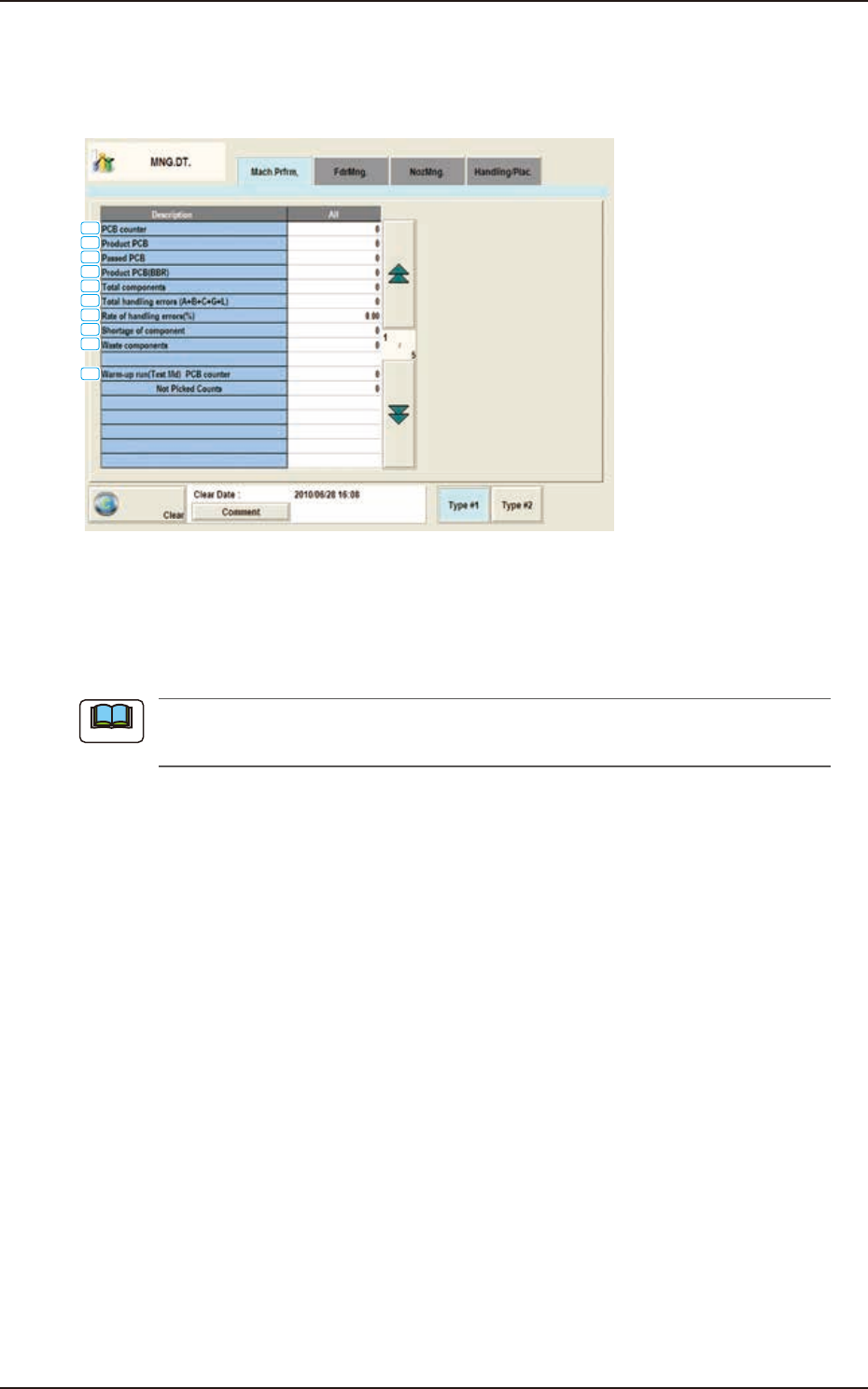 When the [Mach.Prfrm,] tab is pressed in the "MNG.DT." window, the following tab sheet appears