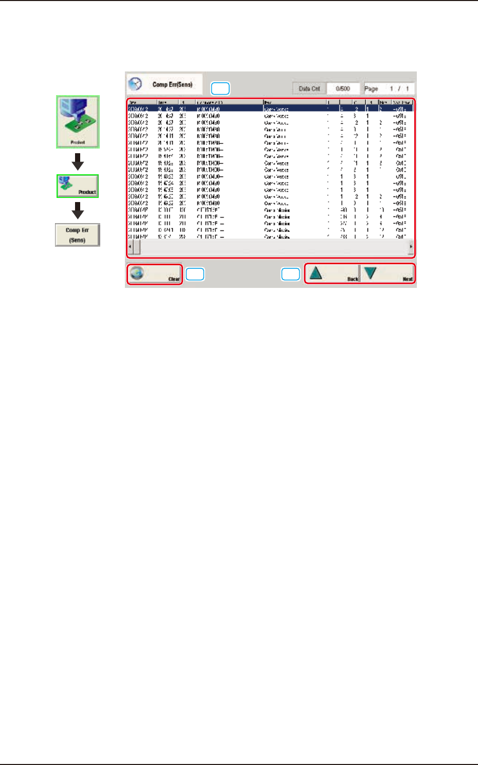 When the [Comp Rcg Err] button is pressed, the "Comp Rcg Err" window appears.