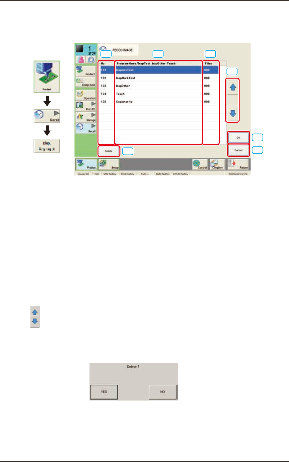 When the No. for the recognized image to be deleted is selected and the [Delete] button is pressed,