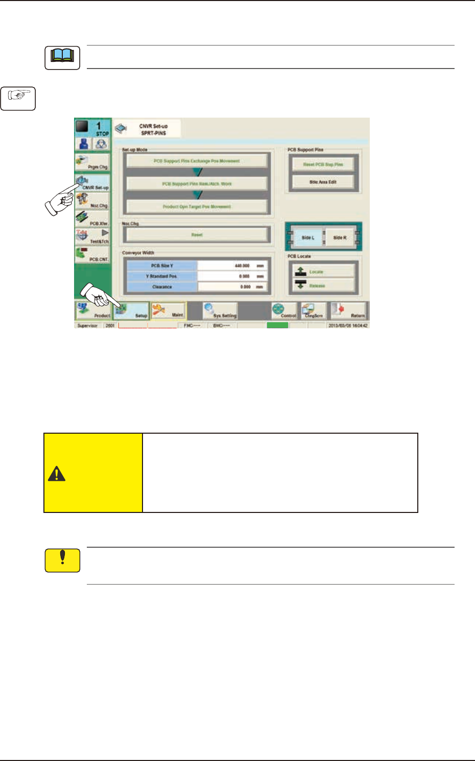 (2) Press the [PCB Support Pins Exchange Pos. Movement] button and within 10 seconds, press