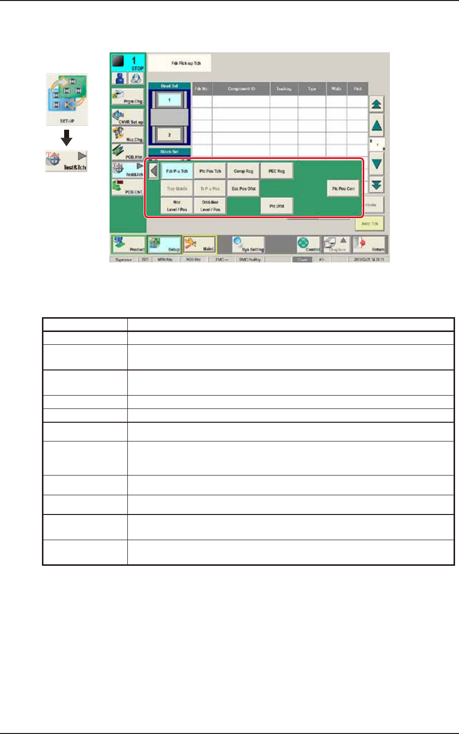 The "Test&Tch" menu is provided with the following 10 buttons. When each button is pressed, the