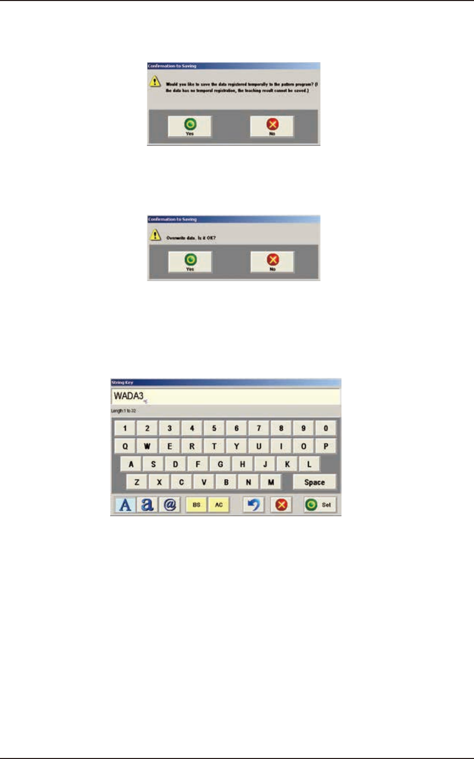 When the [Yes] button is pressed on the "Confirmation to Saving" window, the "Confirmation