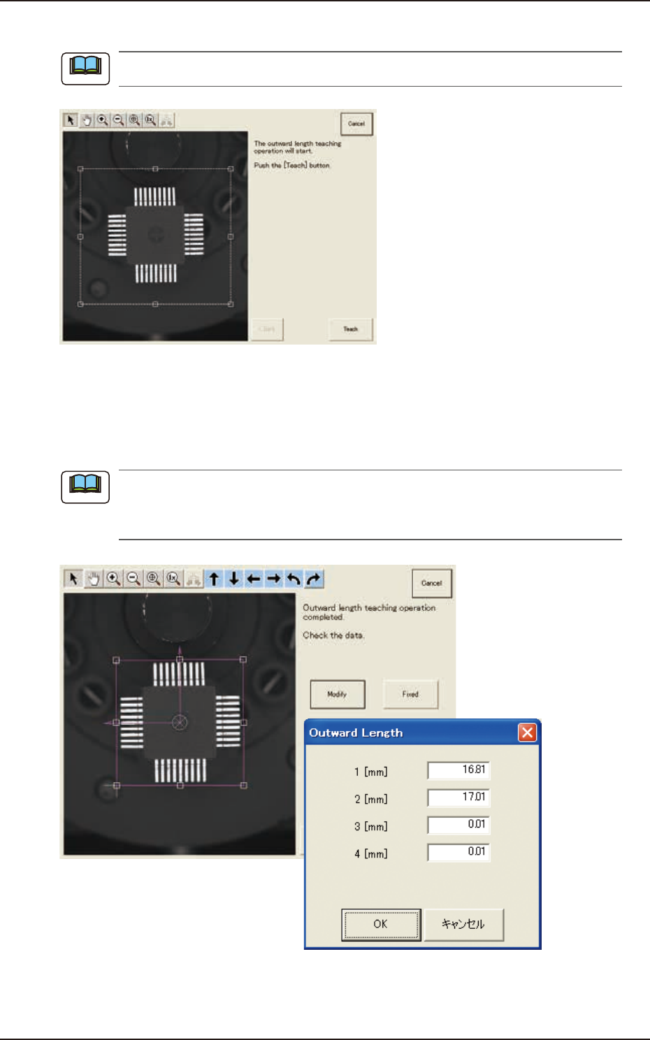 (6) When the outward length teaching is completed, check the data and press the [Fixed]