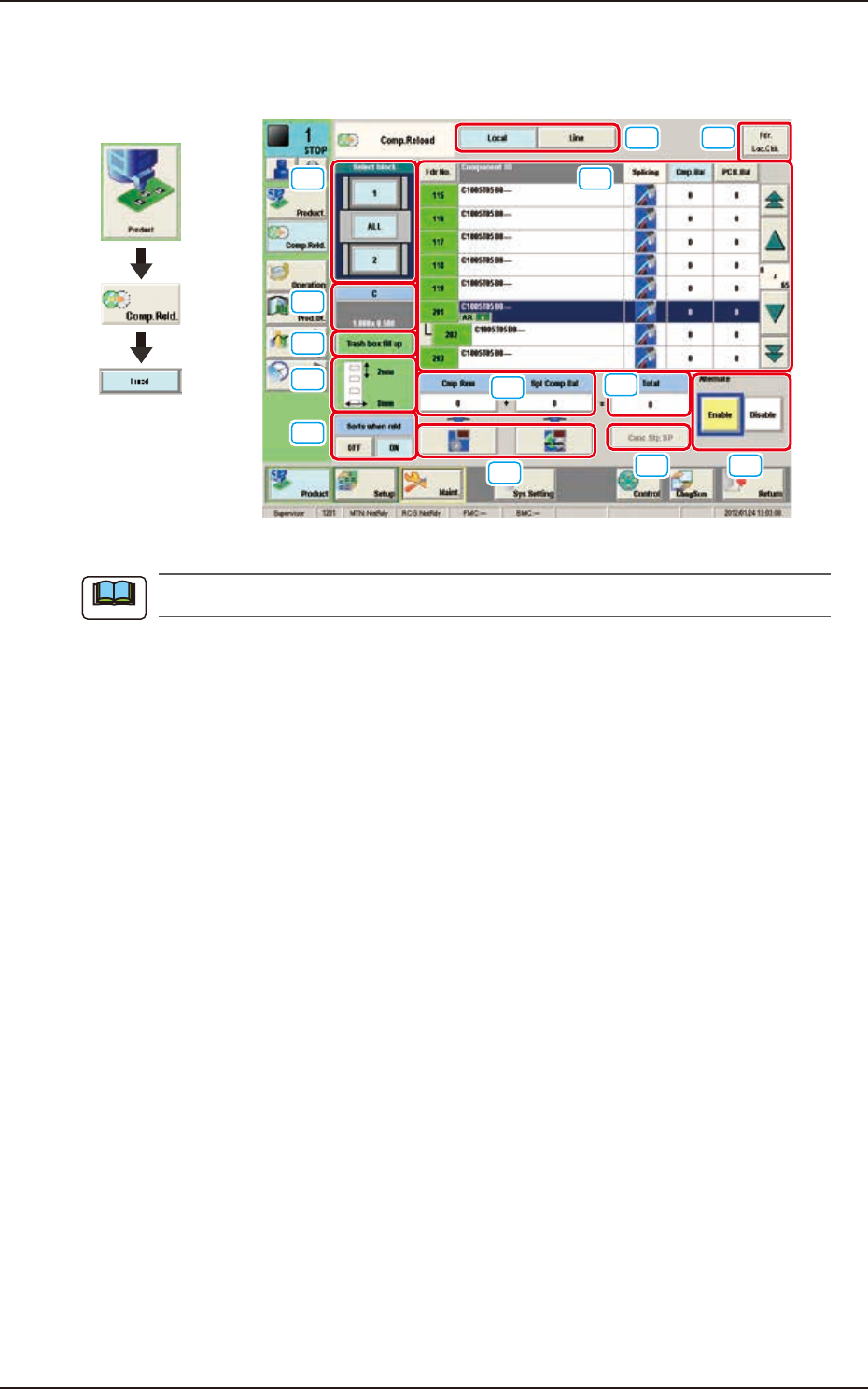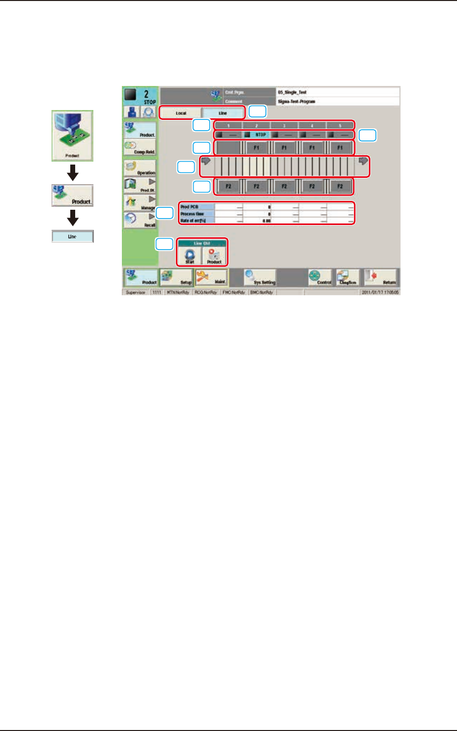 the line configuration, PCB transfer unit graphic image and production data are displayed.