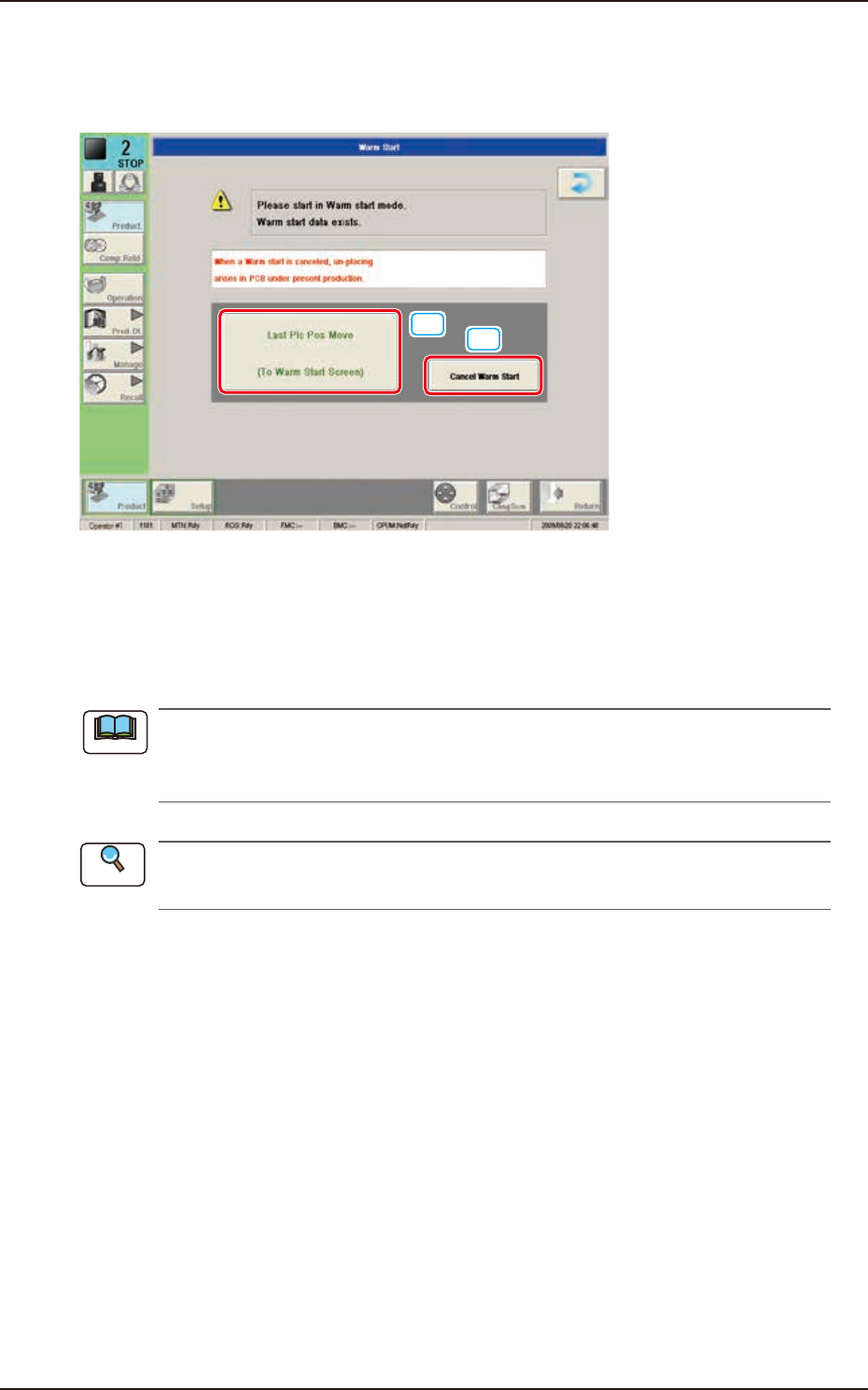Refer to “5.3 Resumption of Production through Warm Start Procedure”