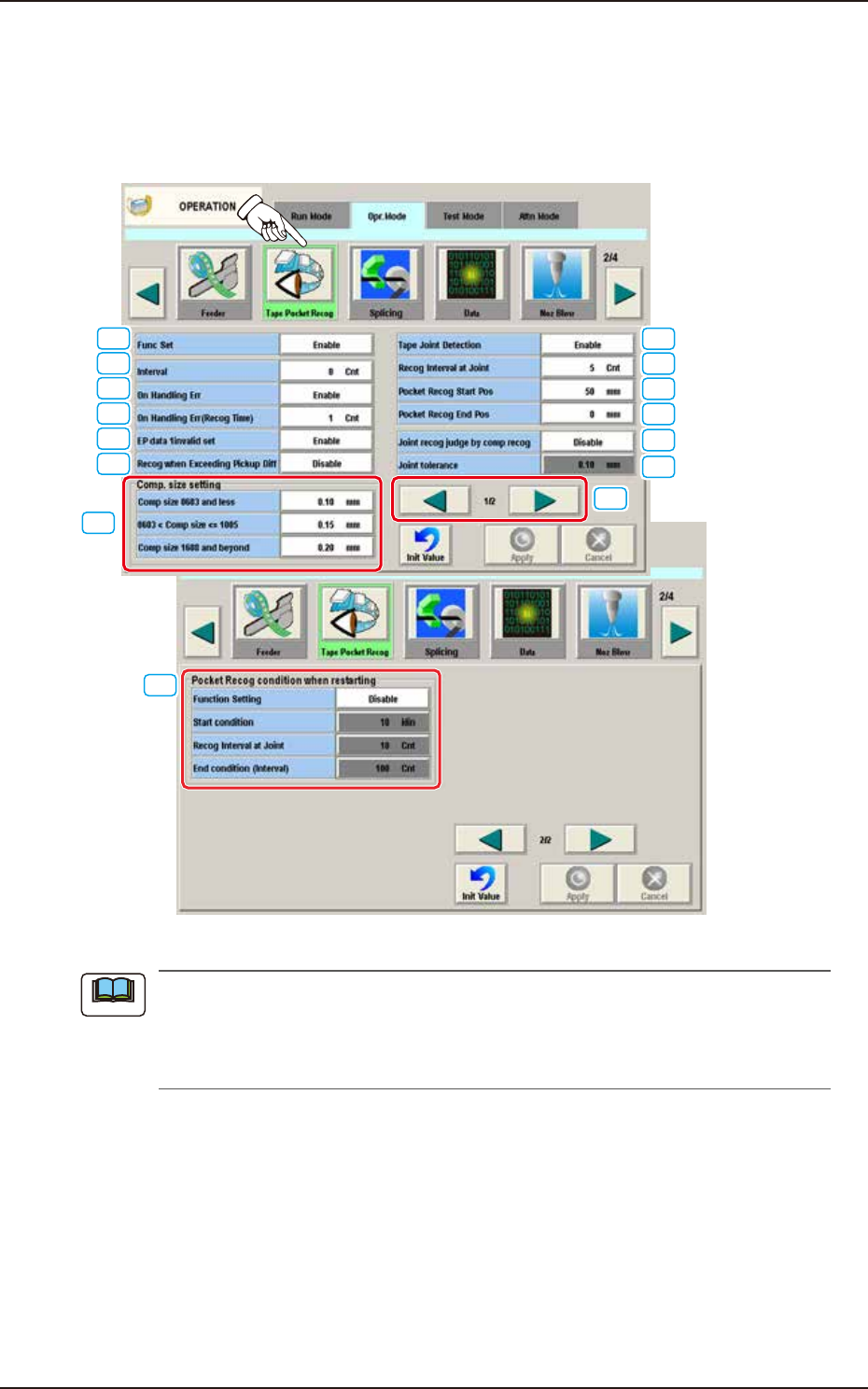When the [Tape Pocket Recog] button is pressed on the "Operation Mode" tab sheet, the following