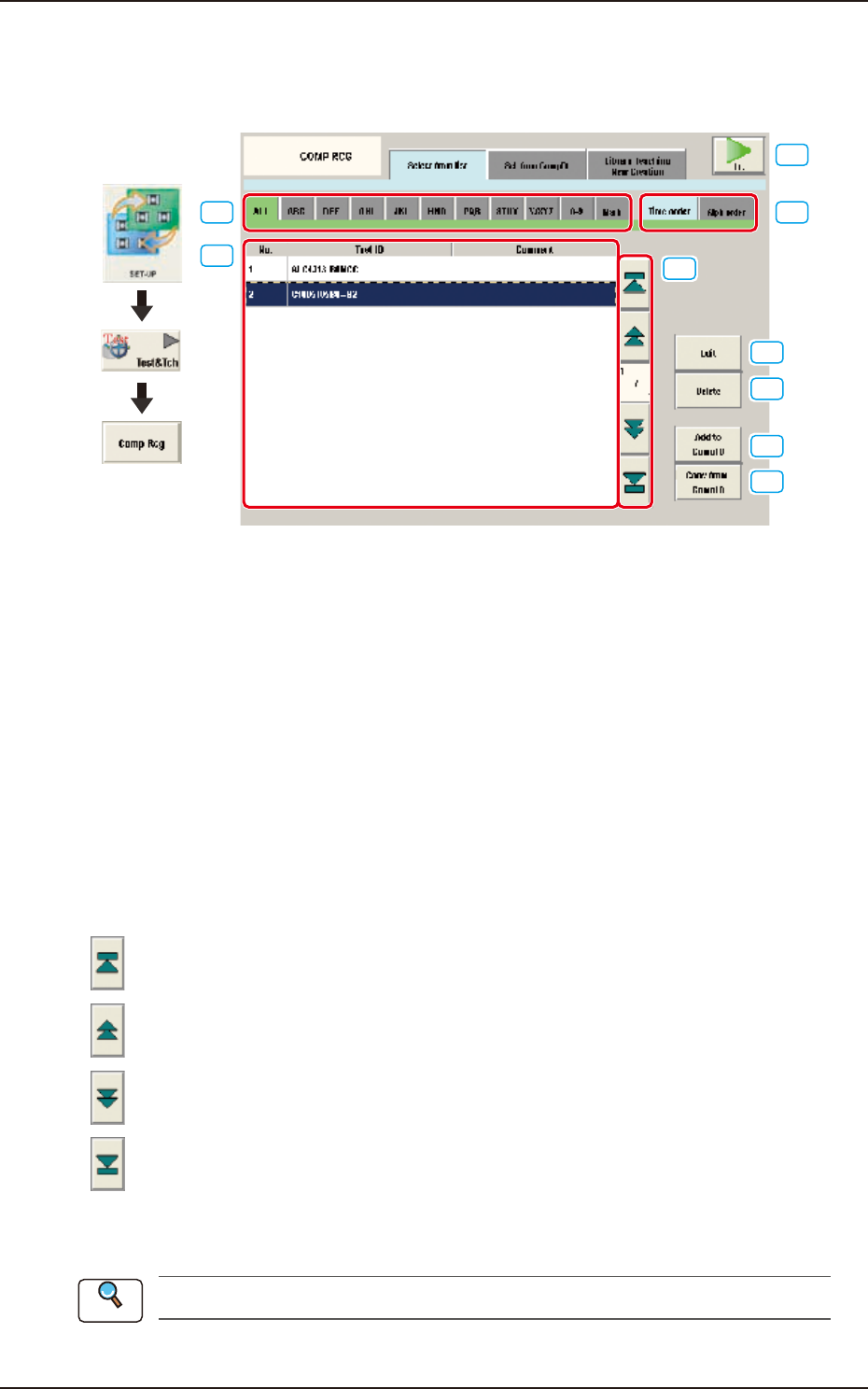 When this button is pressed, the test ID selected in [3] is edited.