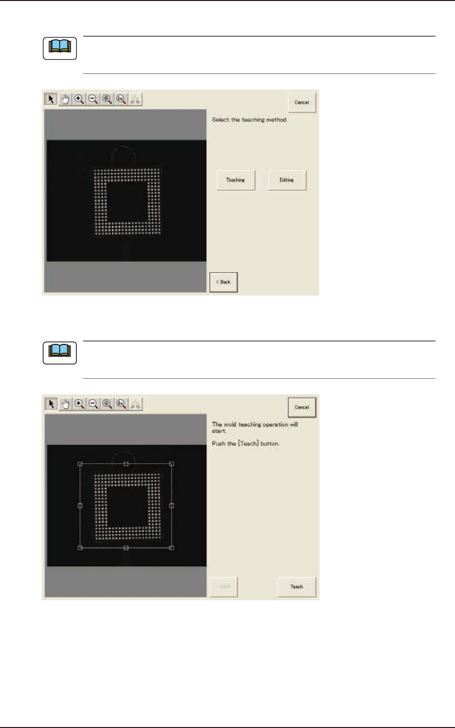 (6) Press the [Teach] button to start the mold teaching operation.
