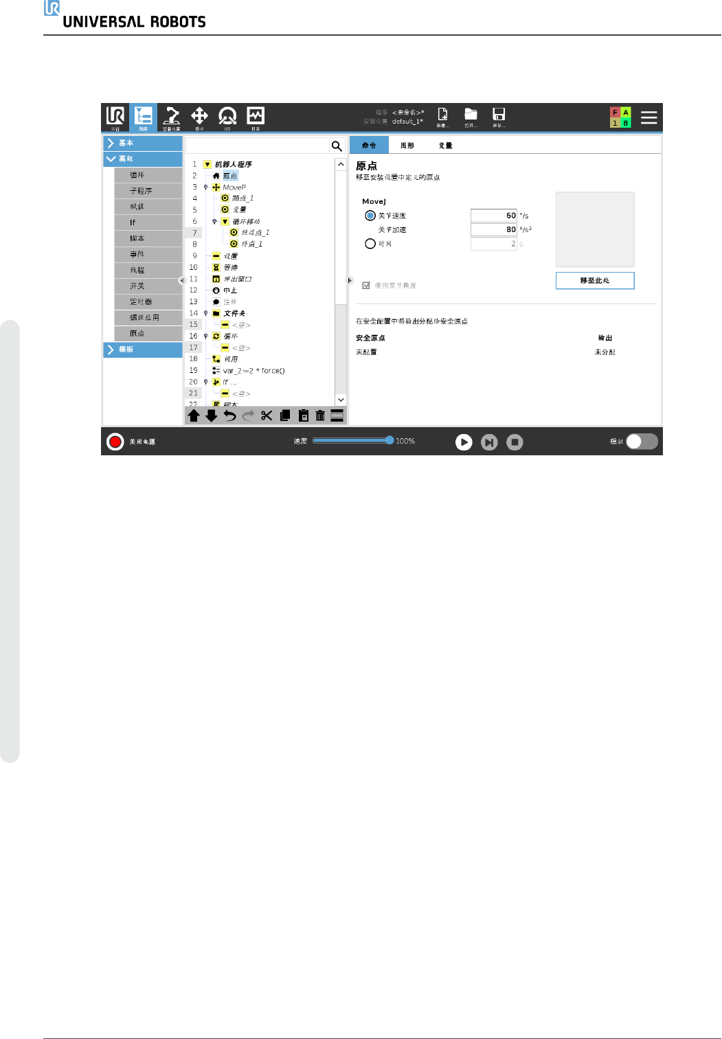 回零节点使用关节角度将机器人移动至预先定义的原点。如果被指定为安全原点,那么回零