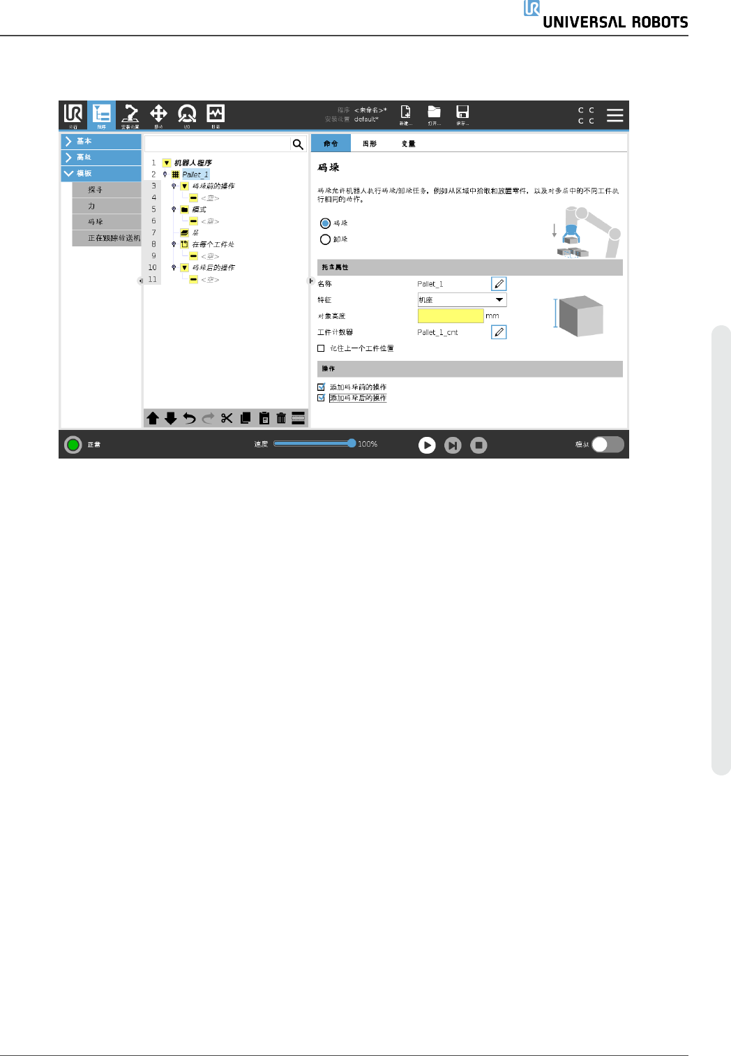 2. 在程序选项卡的模板下,点按码垛。