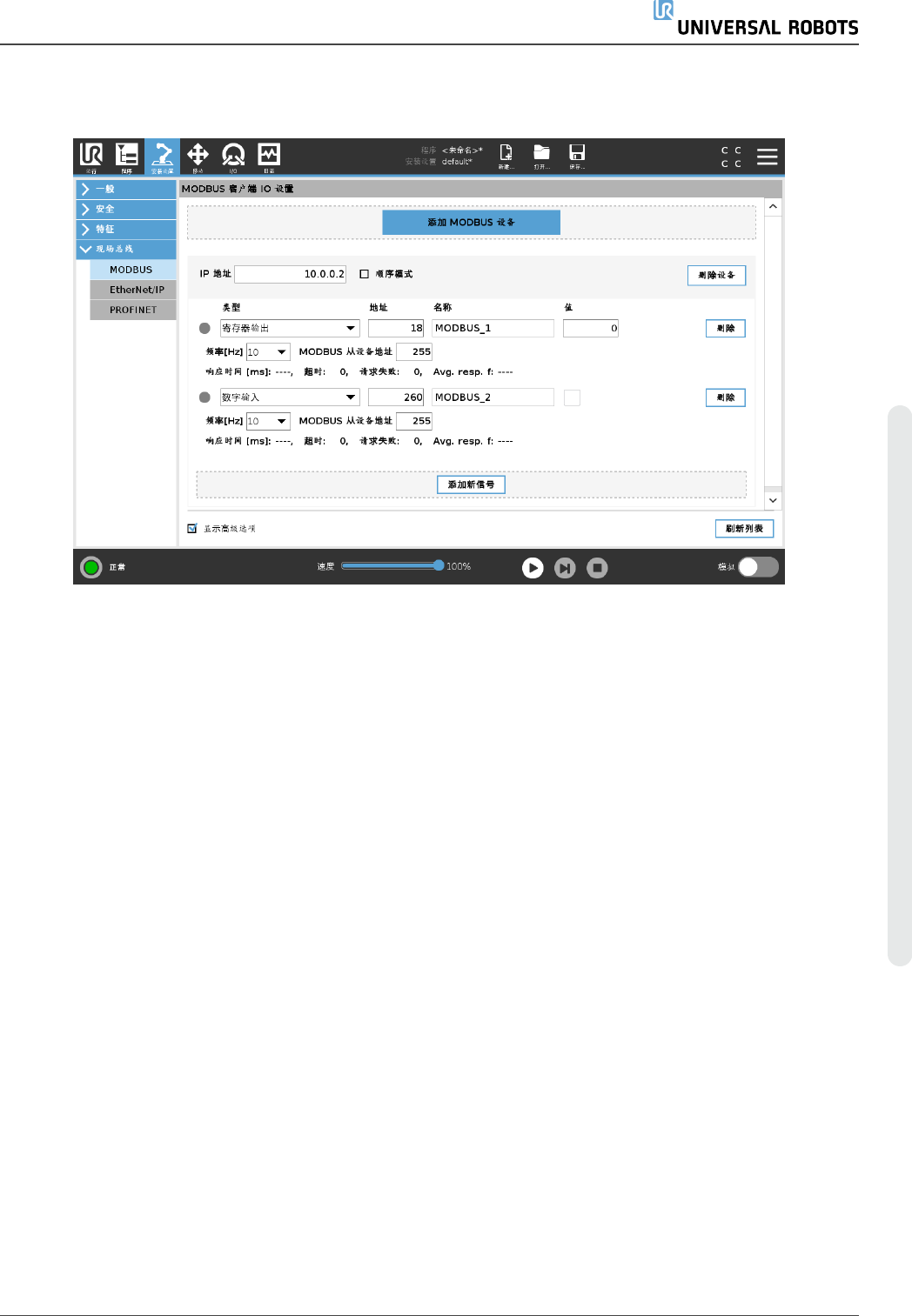 此处可设置 MODBUS 客户端( 主) 信号。可由输入/输出信号( 寄存器或数字) 创建与指定 IP 地
