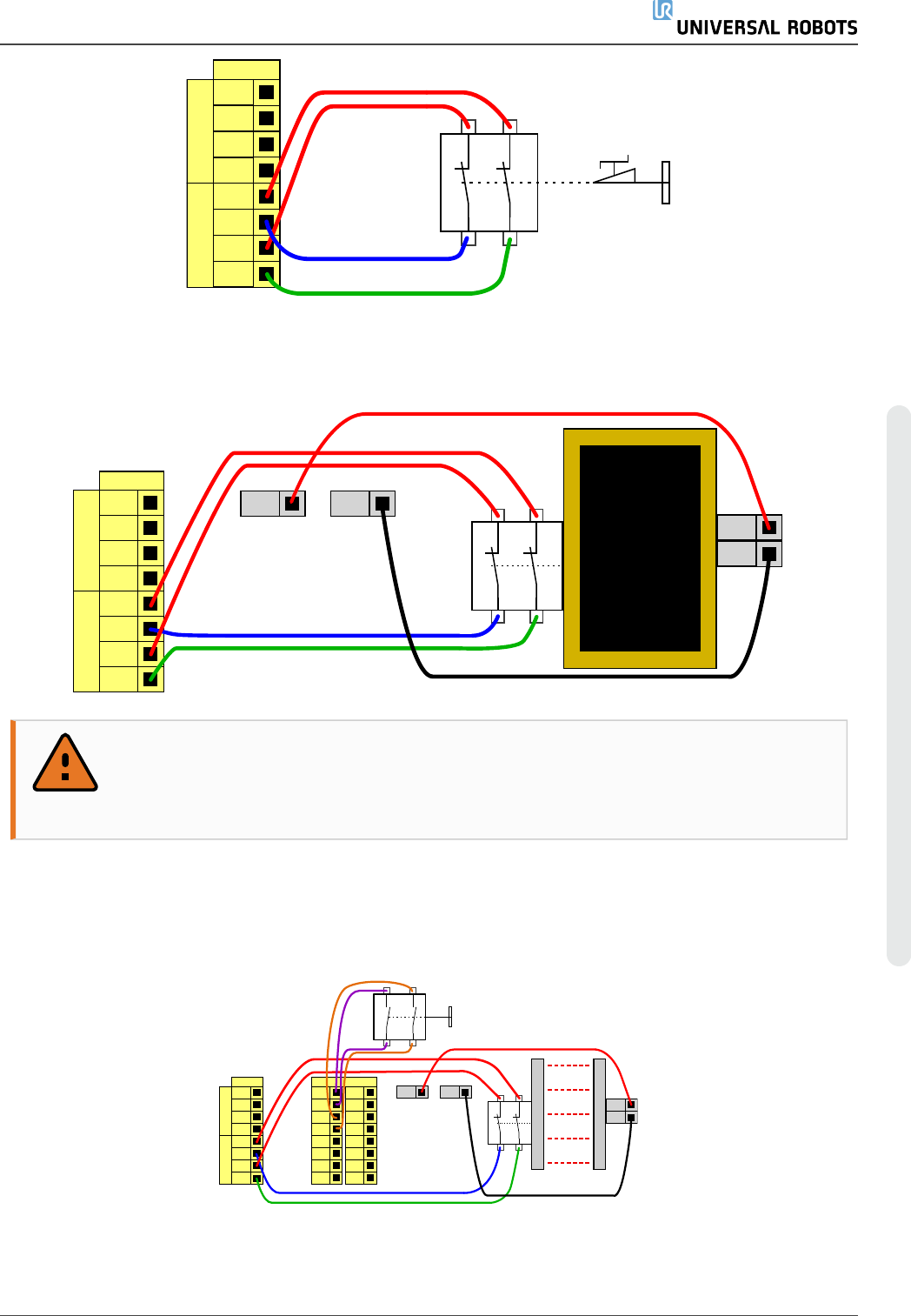 3 档 位 使 动 装 置 下 图 说 明 了 3 档 位 使 动 装 置 的 连 接 方 法 。 有 关 3 档 位 使 动 装 置 的 更 多 信 息 , 请 参 阅 21. 操 作 模 式 选 择 在 本 页 103 一 节 。 提 示 通 用 机 器 人 安 全 系 统 不 支 持 多 台 3 档 位 使 动 装 置 。 24V CI1 24V CI2 24V CI3 24V CI0 24V CI5 24V CI6 24V C…