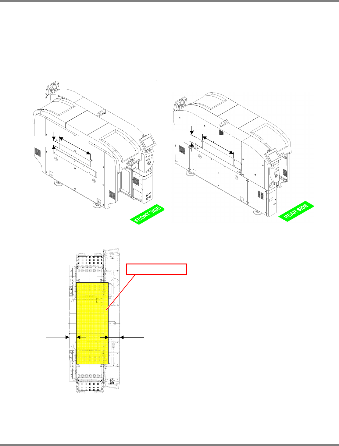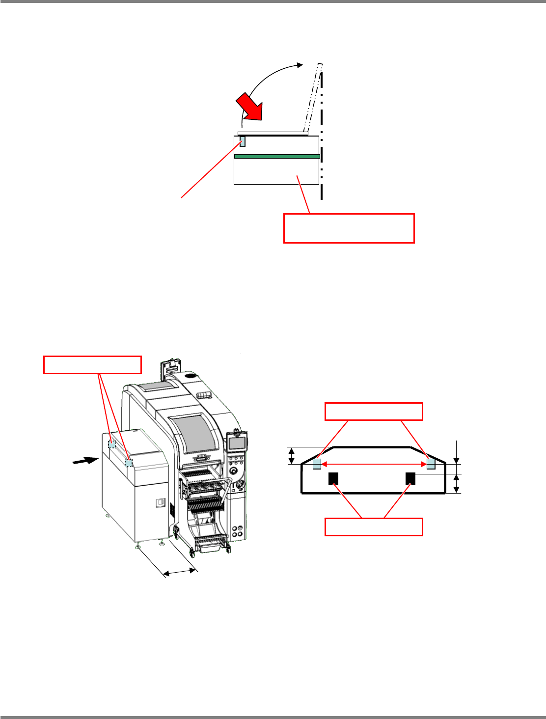 NPM-D 安装篇 1.3 周边装置和电缆的连接 EJM1DC-MB-01I-00 Page 1-31 为了确保搬送开口部的安全,请满足下述条件。 1. 连接之际,需要设置满足 ISO13849-1 或 IEC62061 等的机械安全要求的装置。 2. 如图 4 所示,请从 NPM-D 的开口部⑤、⑥确保 600 mm 以上的安全距离。 3. 如果上述距离在 400 ~ 600 mm 之间,请如图 6 所示在搬送开口部设置安全 传感…