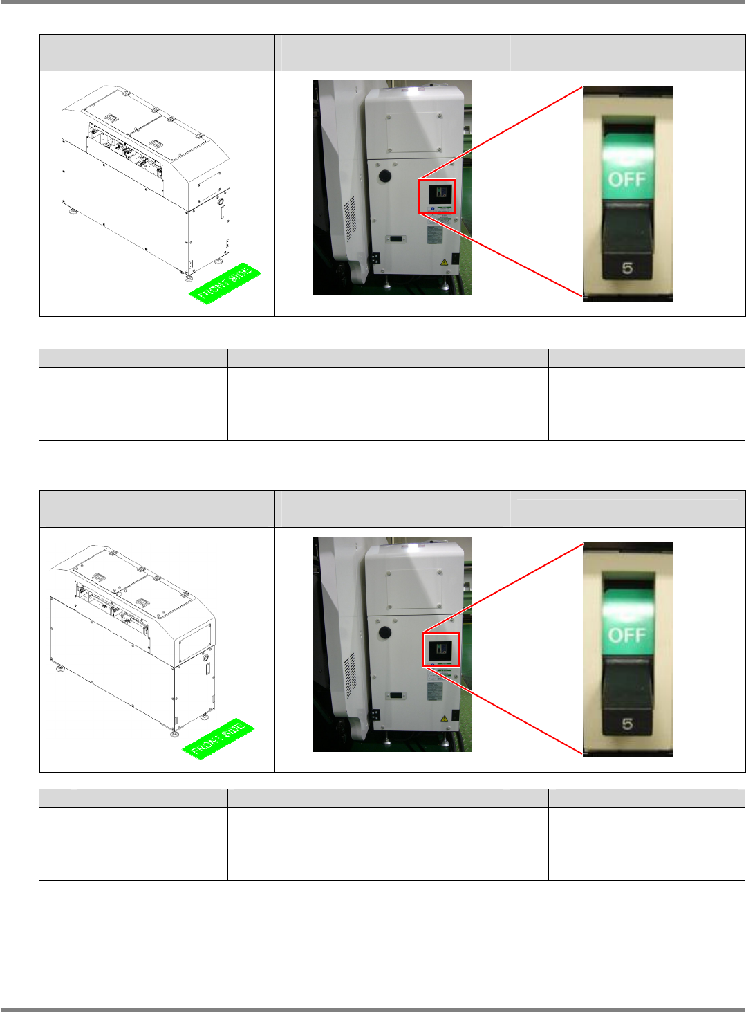 NPM-D 安装篇 2.1 各部的名称和功能 EJM1DC-MB-02I-00 Page 2-11 以下对于 NPM-D LNB 传送带及 NPM-D HUB 传送带的操作装置进行了说明。 NPM-D LNB 传送带 NPM-D HUB 传送带 全体图 NPM-D LNB 传送带 NPM-D HUB 传送带 背面图 主电源开关放大图 No. 装置名称 功能 数量 参照 1 主电源开关 控制 LNB 传送带或 HUB 传送带电源的 ON …