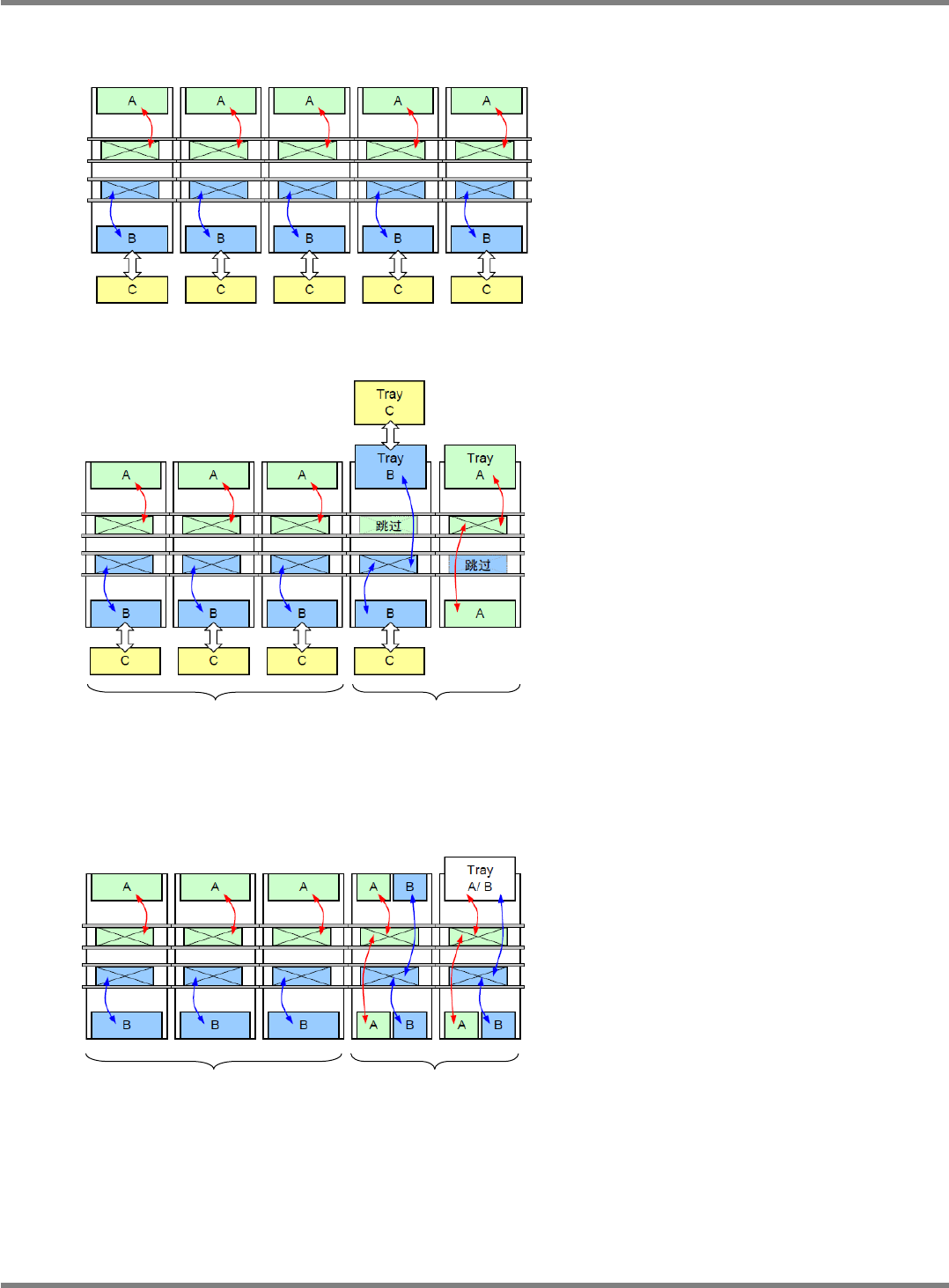NPM-D 安装篇 2.3 装置的规格 Page 2-32 EJM1DC-MB-02I-00 NPM-D 通过实装模式的组合,可以 对应客户的多样化生产形态 。 大型基板实装生产线 交替实装模式 ( 单轨 ) ∗ 对应不可进行双轨传送的大型基板。 高效率实装生产线 交替实装模式 ∗ 将基板传送损失减少到最低。 ∗ 配置最少数量料架来实现高效率生产 。 最高速实装生产线 独立实装模式 ∗ 实现同一基板的最高速实装。