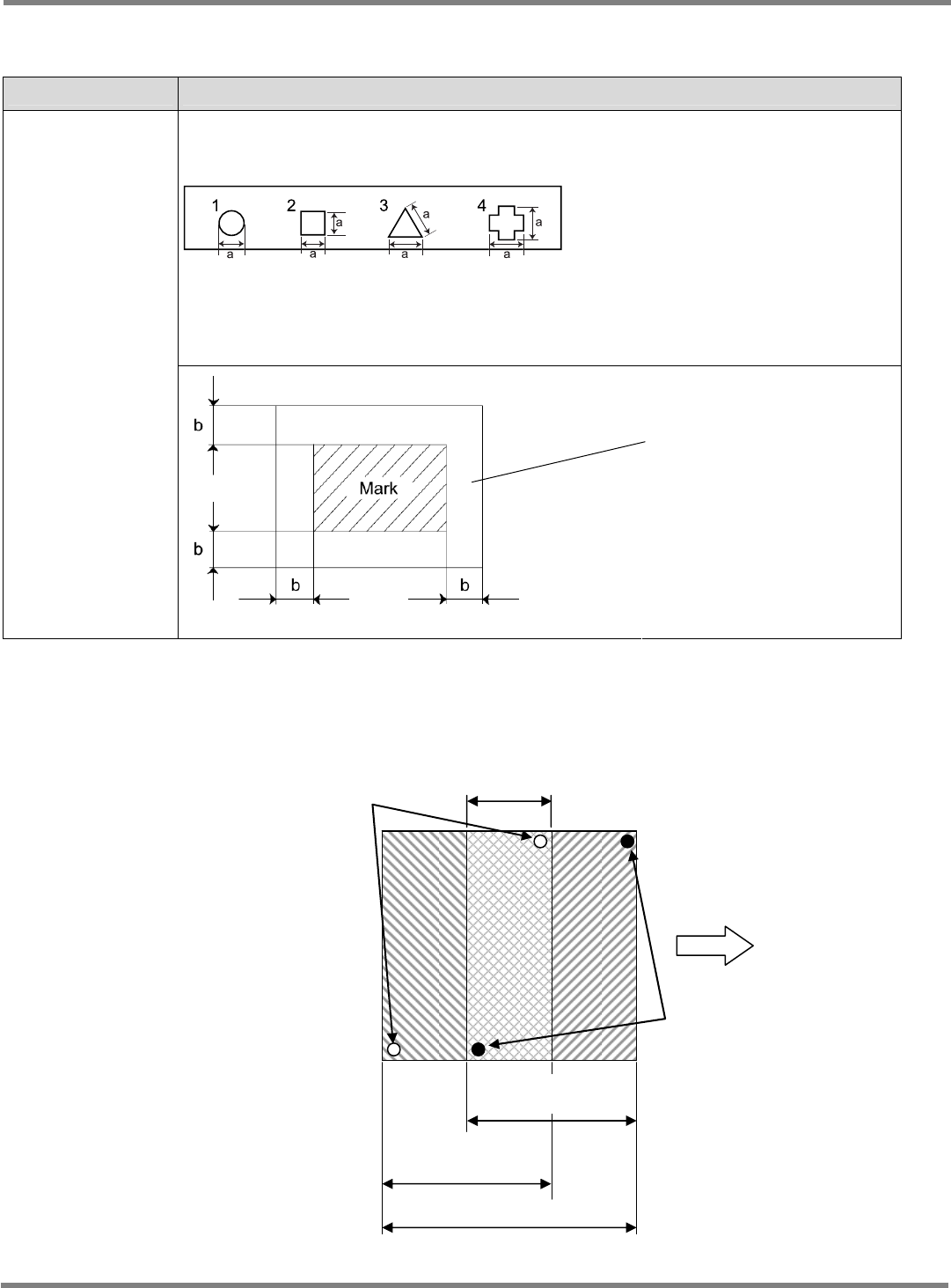NPM-D 安装篇 2.4 其它规格 Page 2-36 EJM1DC-MB-02I-00 A) 共同 项目 规格 标记形状例 基板识别补正按照识别标记和回路图 案的位置关系补正。 识别标记和基板需要一定的对比度 (2 进制对比度图像 ) 0.5 mm ≤ a ≤ 1.6 mm EJM4A-115E ∗ 上图 3 的三角形为等边三角形。 标记尺寸和背景 在标记背景上,要有一定尺寸以上的 与该标记不同的不干涉区域 基板识别标记 EJM4A…