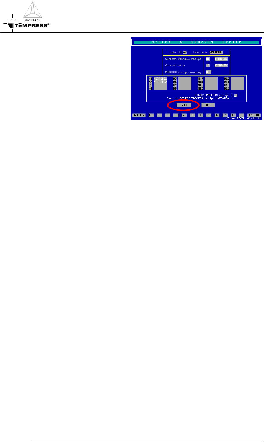 OPERATION INSTRUCTIONS P ROCESS M ANU AL 5) press ‘Yes’ to confir m the question ‘Sure to SELECT PROCESS recipe (Yes/No)?’ Note: selecting another process recipe is only possible if the current proc ess recipe is in Step…