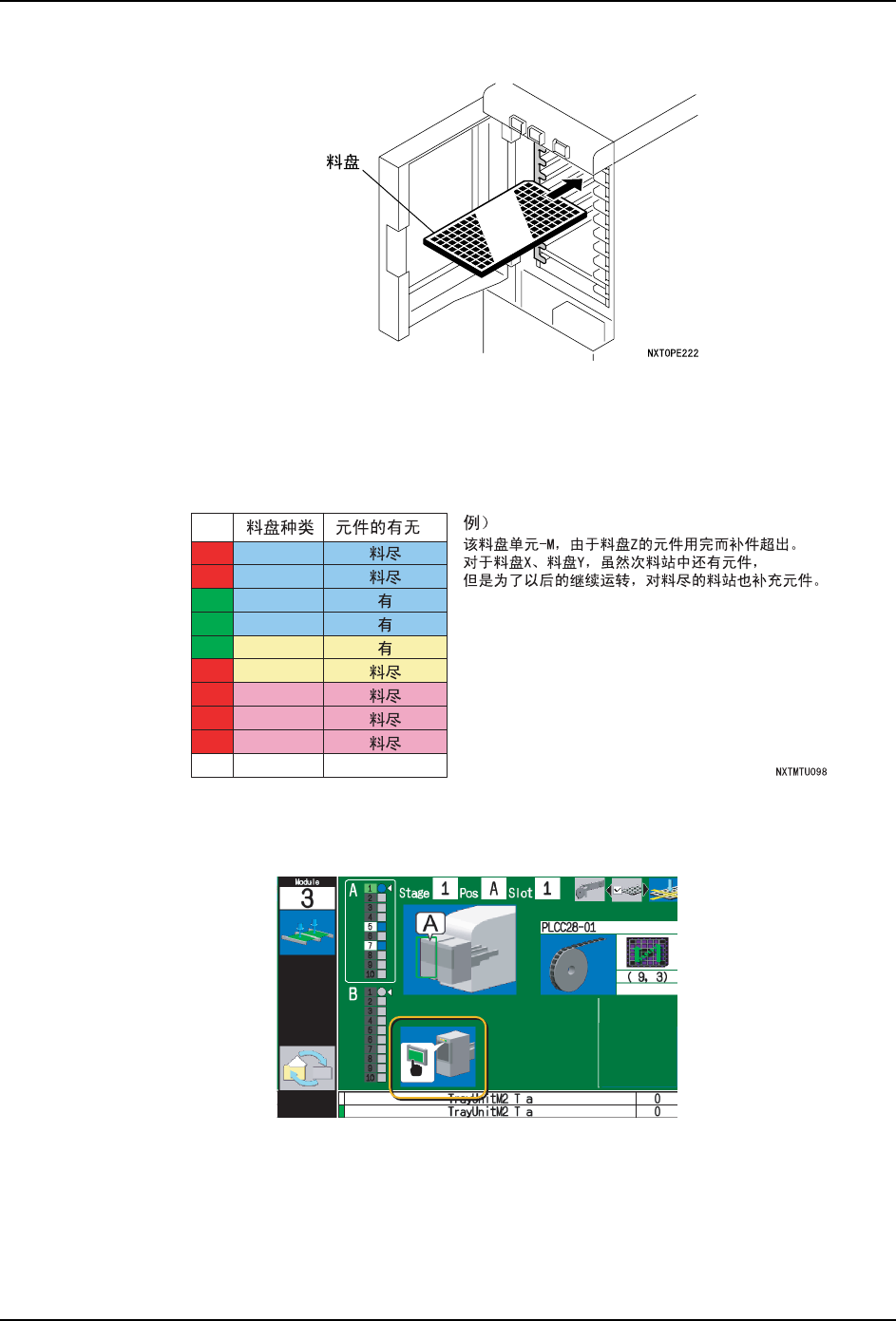a. 此时,不仅是出现停止原因的料槽,对于其他的料槽,如果料尽,也请设置新的料盘。