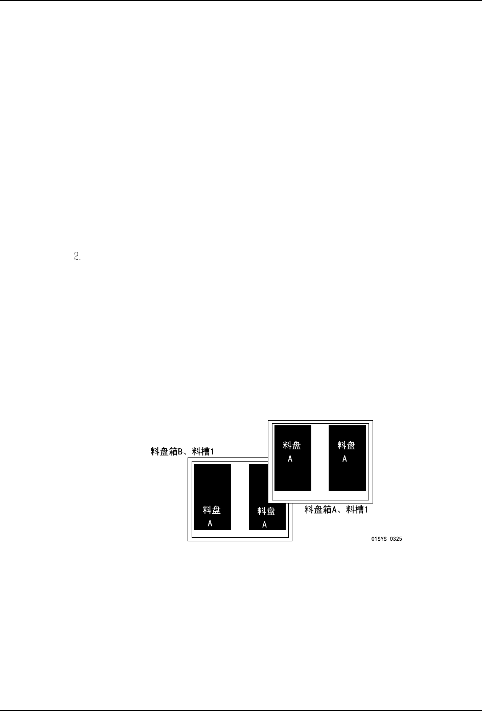 但是,也可以应用以下形式的配置 (1 个托架上放置 2 个料盘)。此时,对放置在副料槽 1