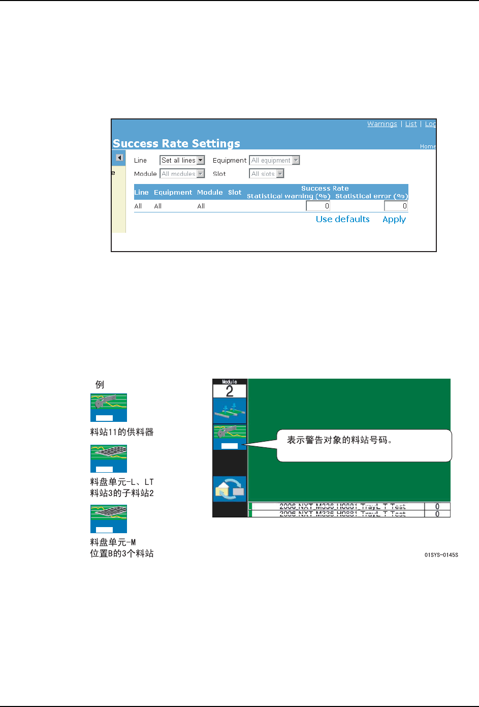 1. 在辅助软件的 [ 成功率设定 ] 画面上,请进行料站统计异常的设定。