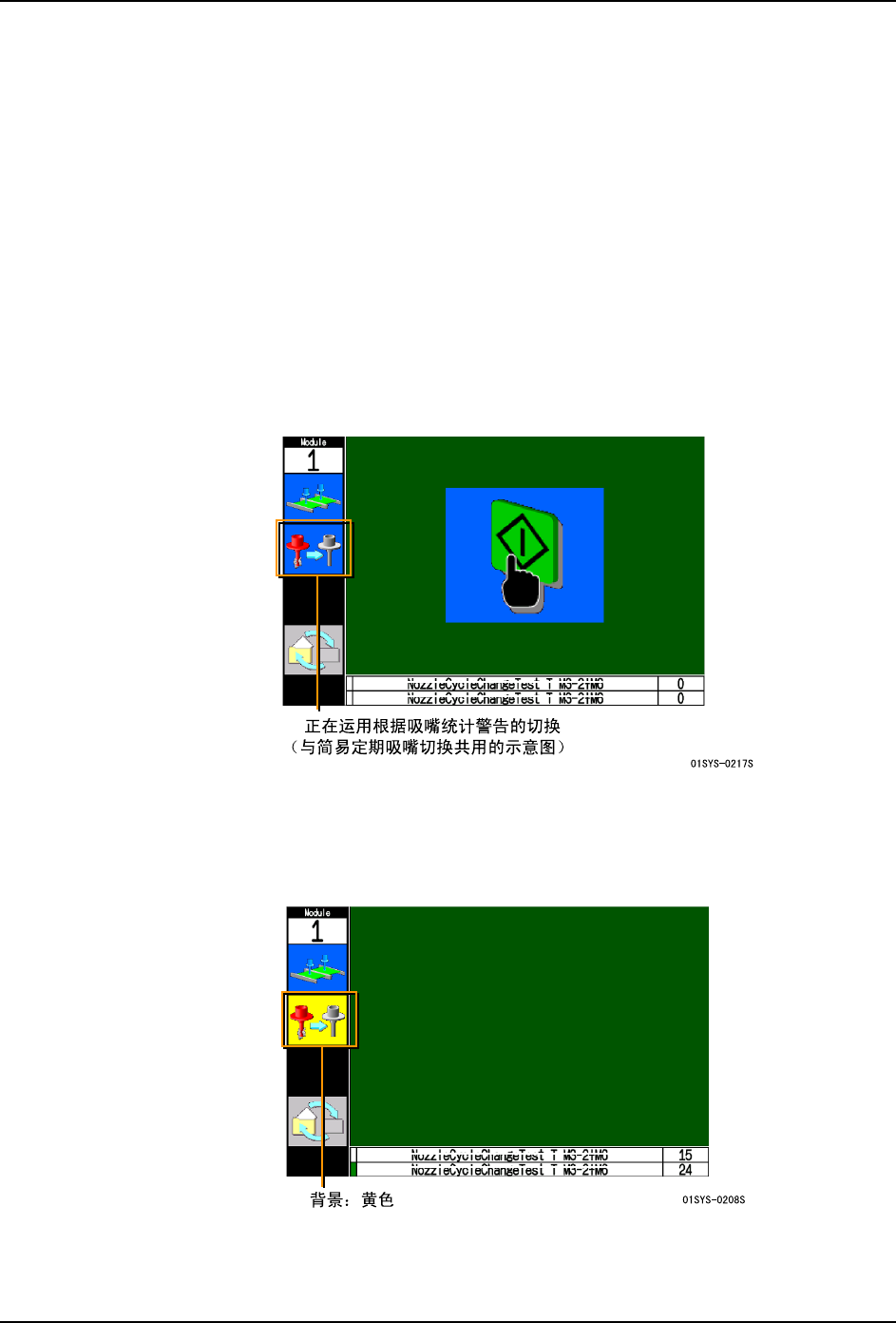 此时,操作画面的状态区域的示意图的背景变成黄色,告知操作者吸嘴置放台内有需要维修