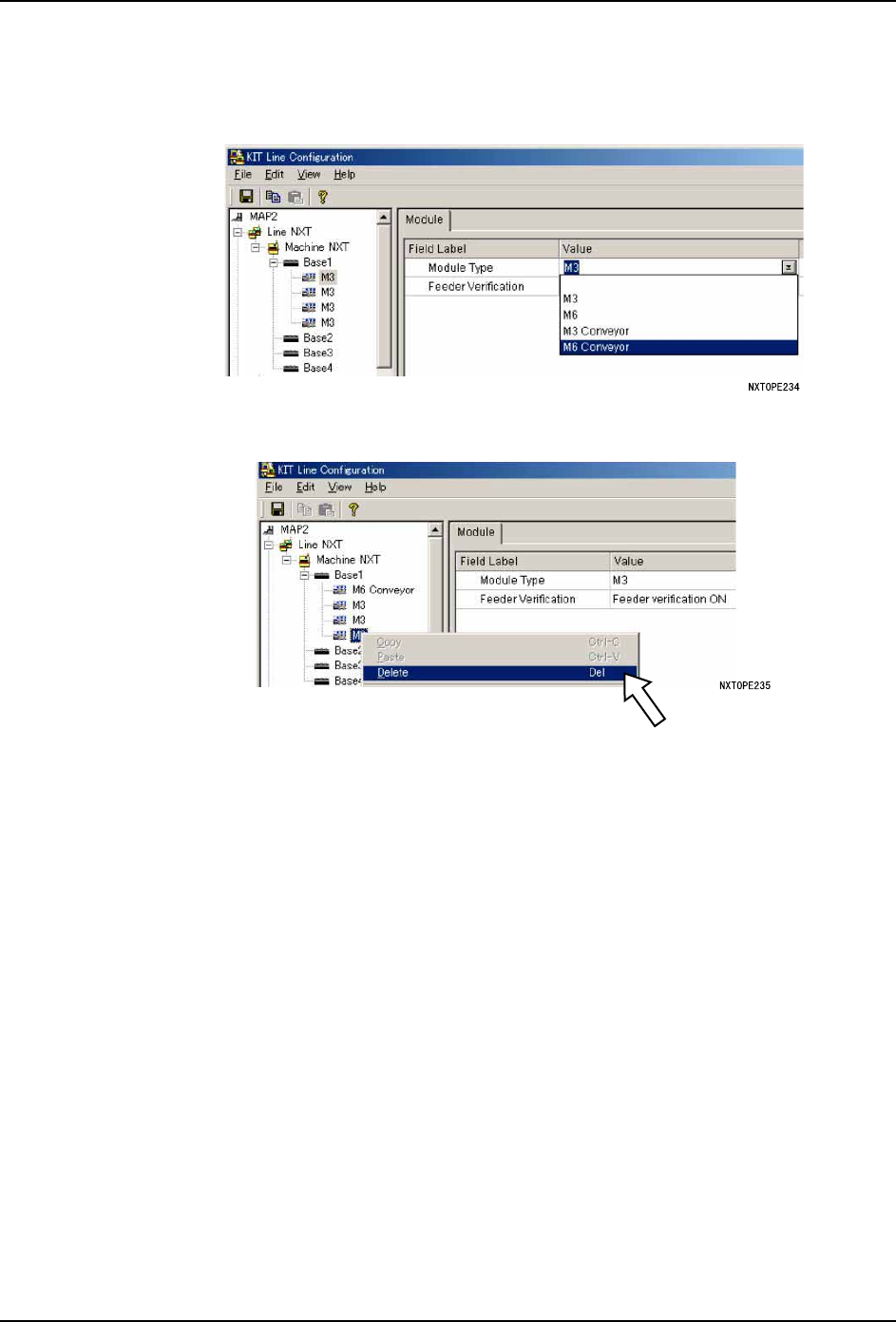 备注 )当 2 M3(S) 模组变更为 M6 模组搬运轨道时,将光标对准所显示的对象模组右击后,