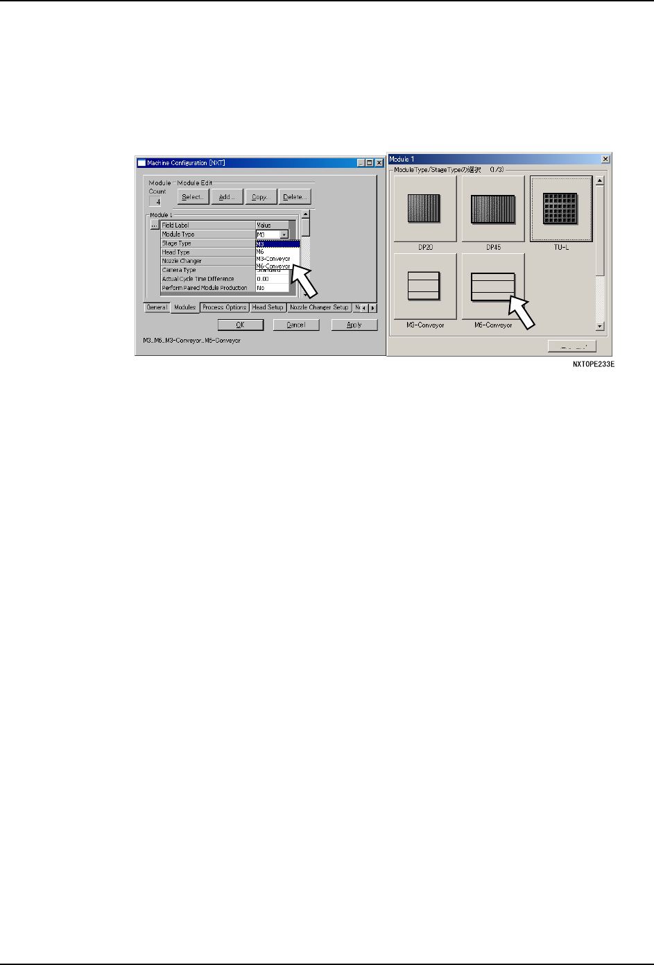 ·请将设置了模组搬运轨道的位置的 [Module Type] 变更为 [M6-Conveyor]此时,