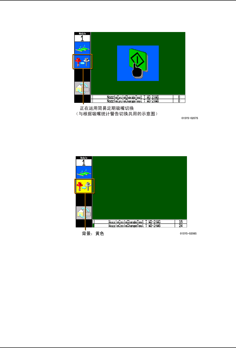 当设定简易定期吸嘴切换后,操作画面的状态区域就会变成以下。