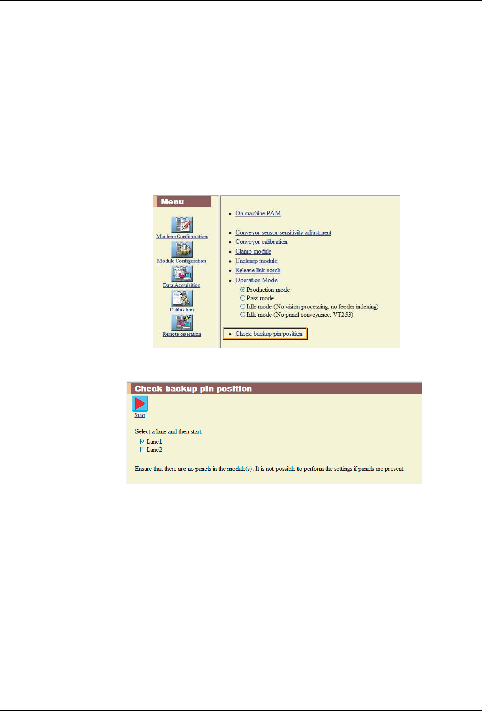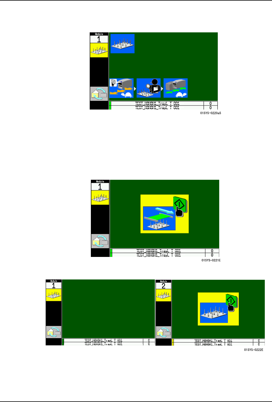 7. 下一模组变成支撑销配置确认模式。请按下下一模组的 START 按钮。