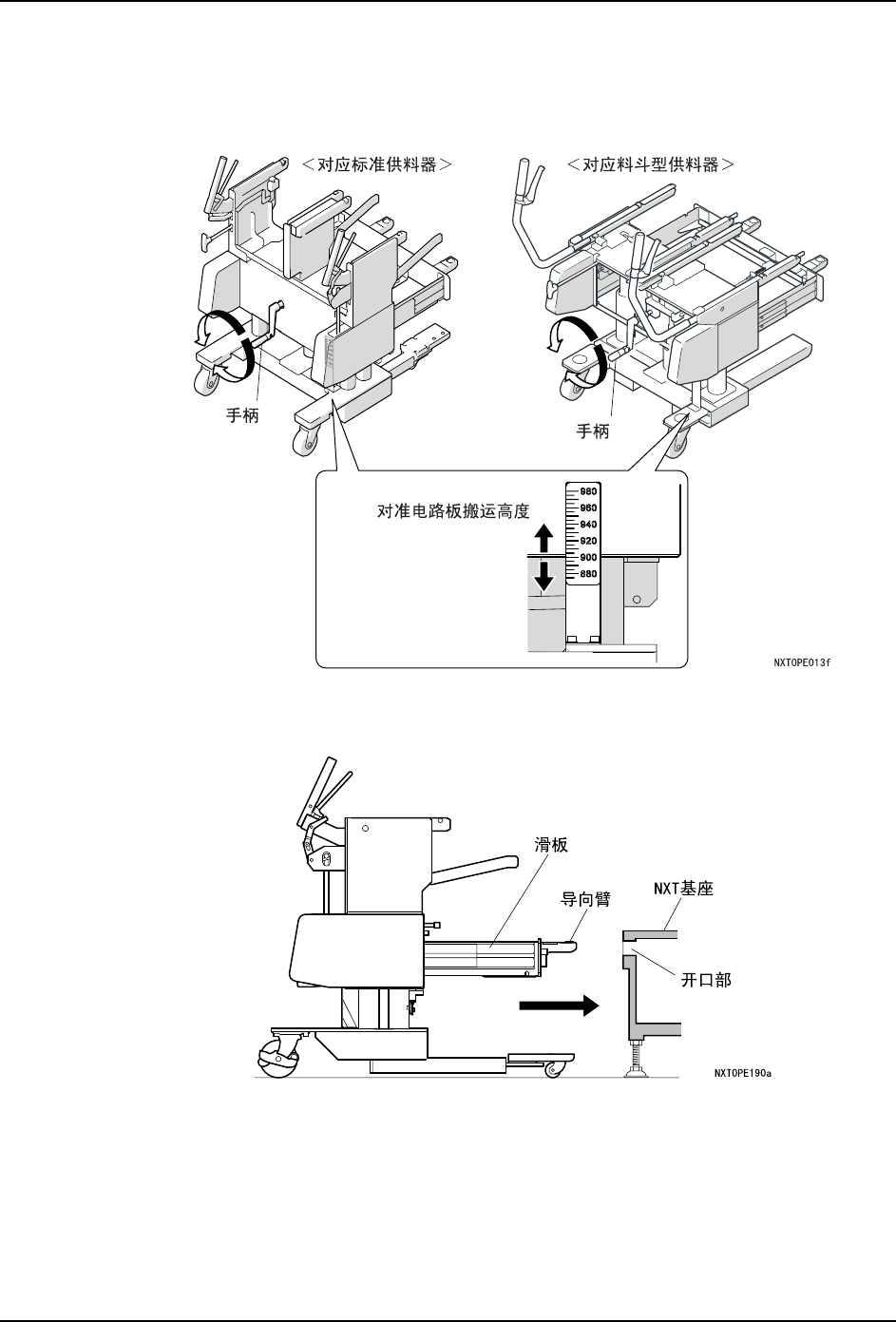 1. 准备 PCU。旋转手柄使 PCU 上下移动,请确认刻度使之对准机器的电路板搬运高度。