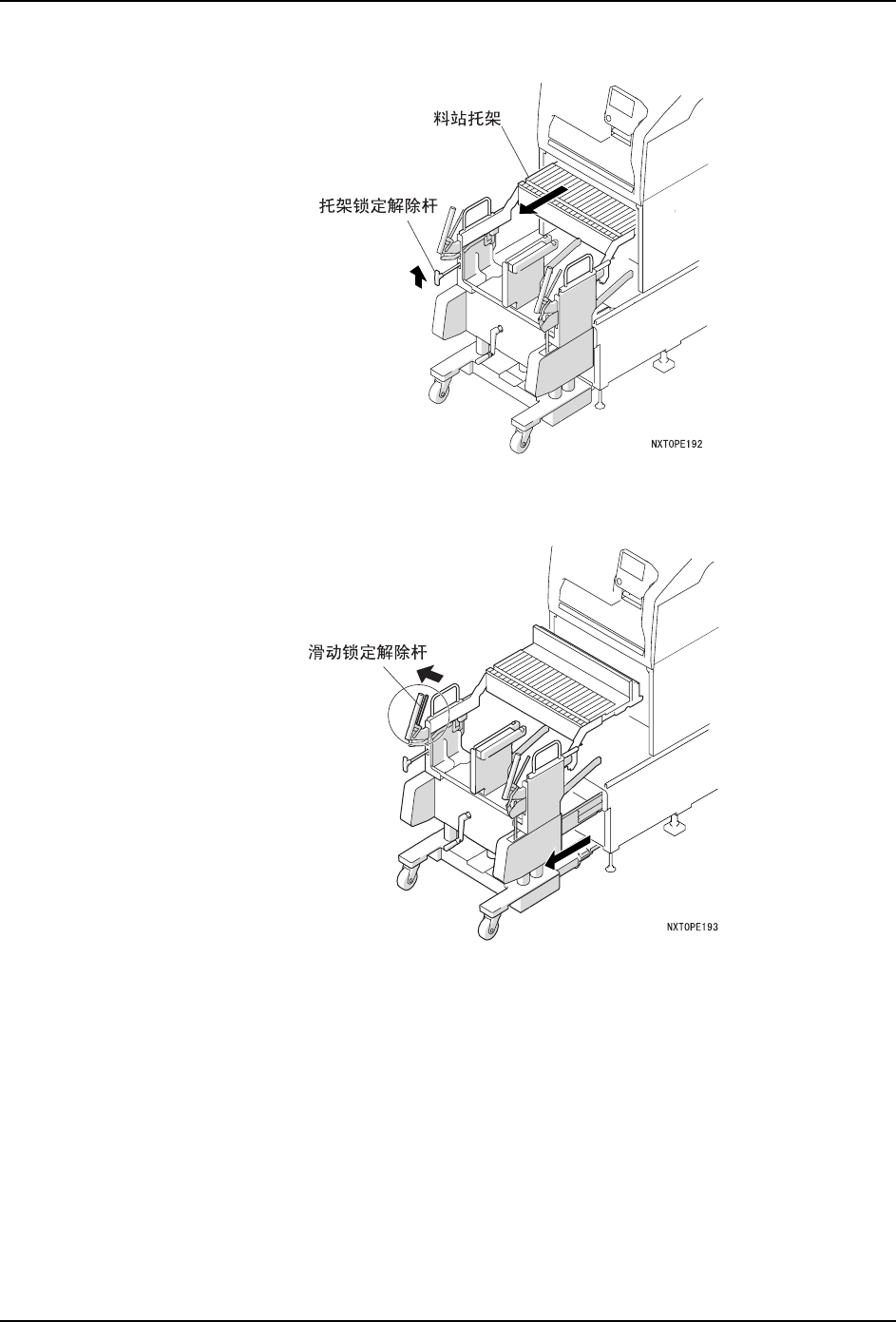 5. 请提起托架锁定解除杆后,拉出料站托架。