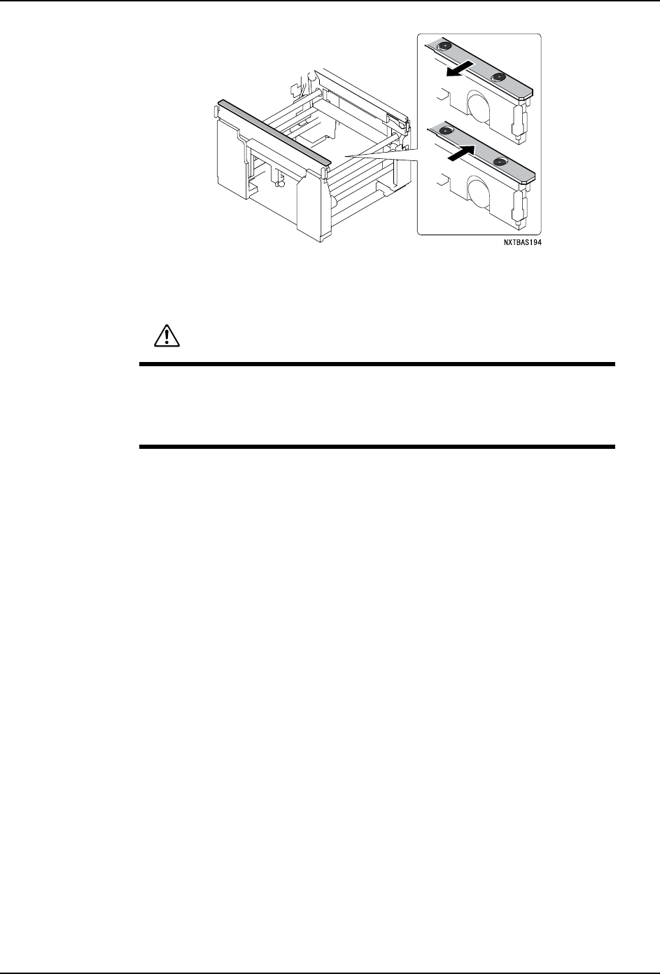 5. 握住模组的手柄后,模组的锁定被解除。在按住手柄的状态下将模组缓慢地拉出到碰到