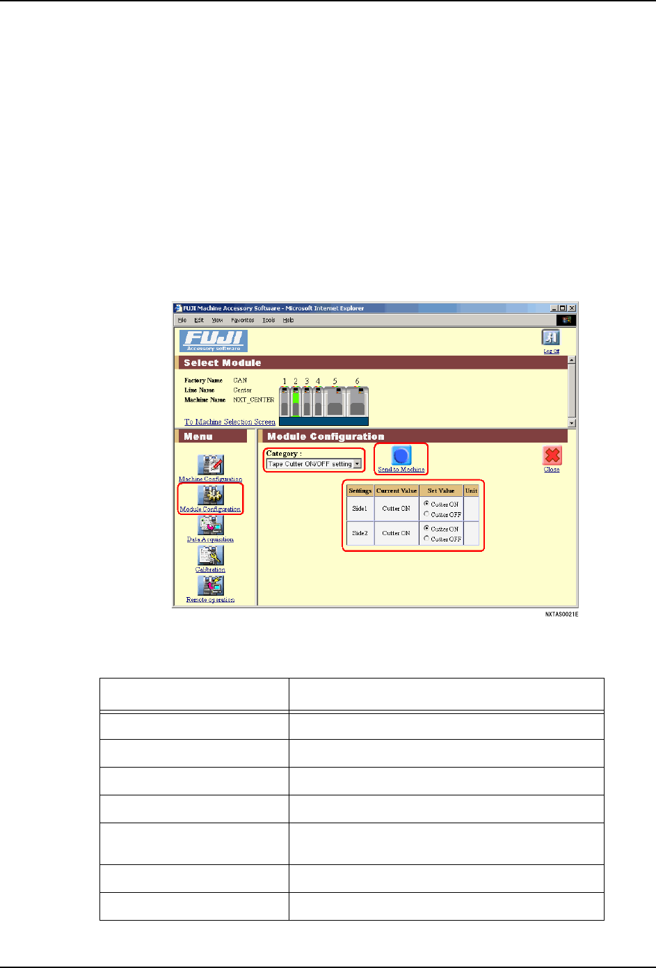 4. 在各个项目上进行必要的设定。在选择 1 台以上的模组时,各个模组的设定内容不同时,