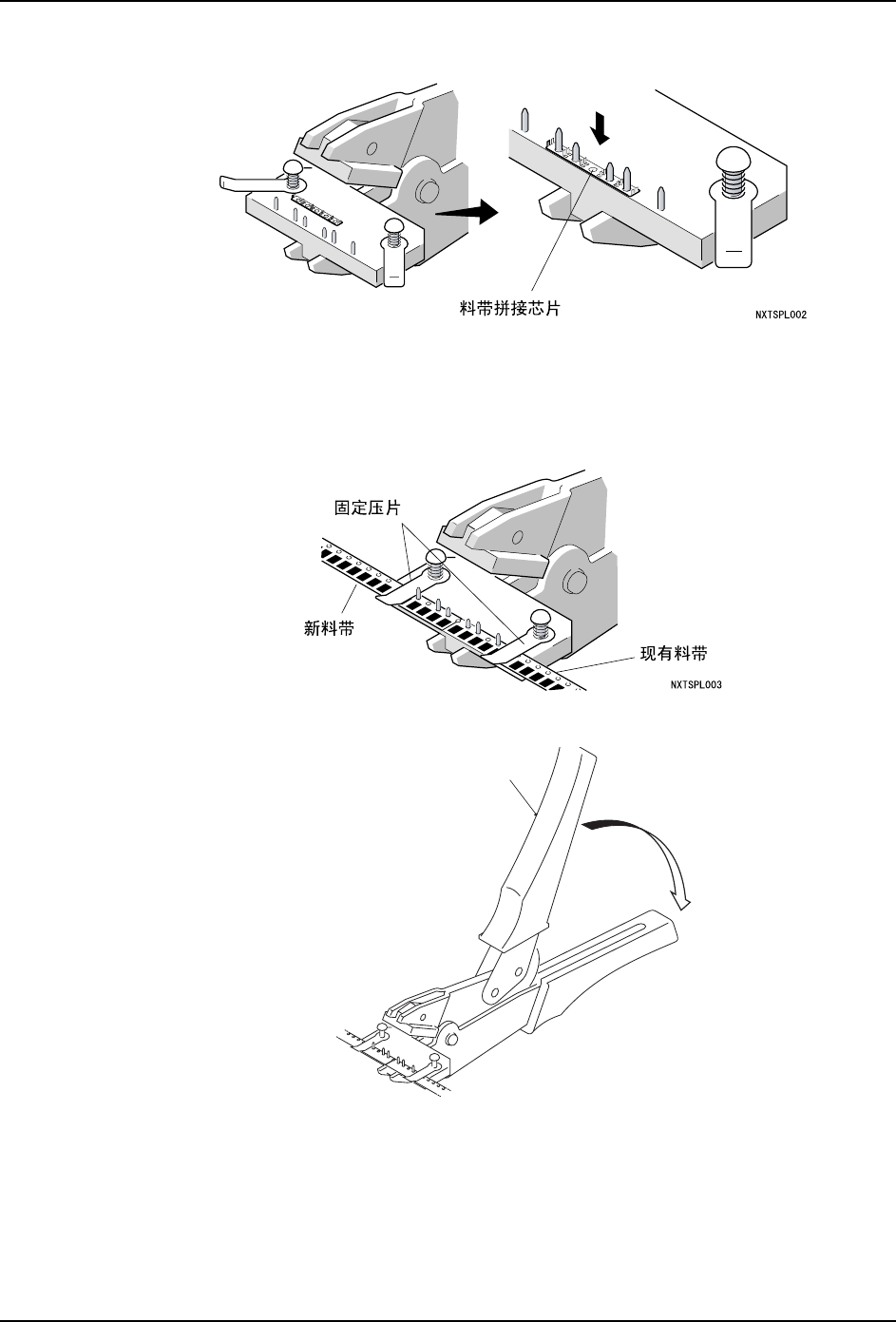 19.用力握紧料带拼接工具的手柄,通过料带拼接芯片连接双方的料带。