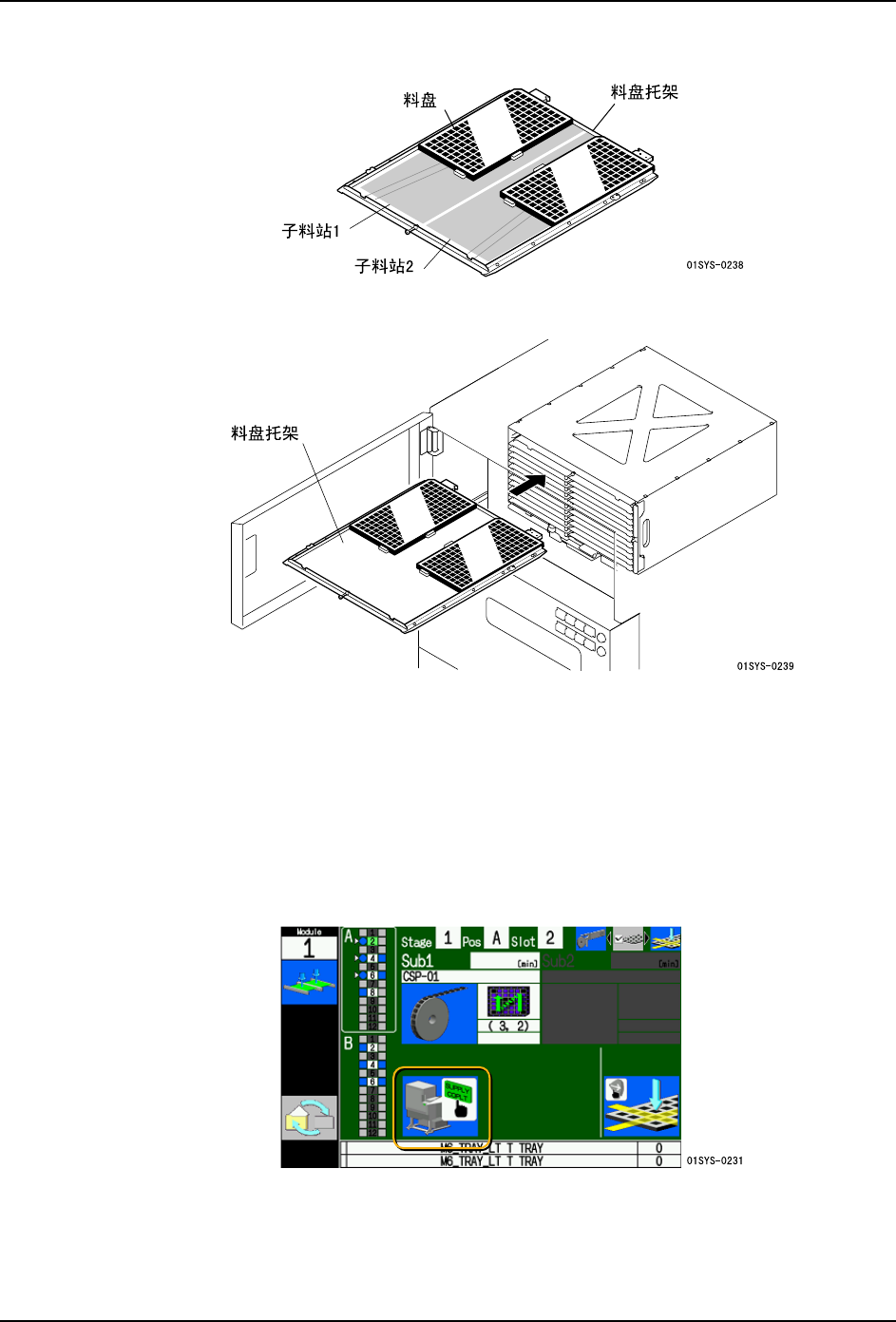备注 )即使没有完成所有料盘的补充,如果生产中需要的料盘已被安装,就能够重新开始生