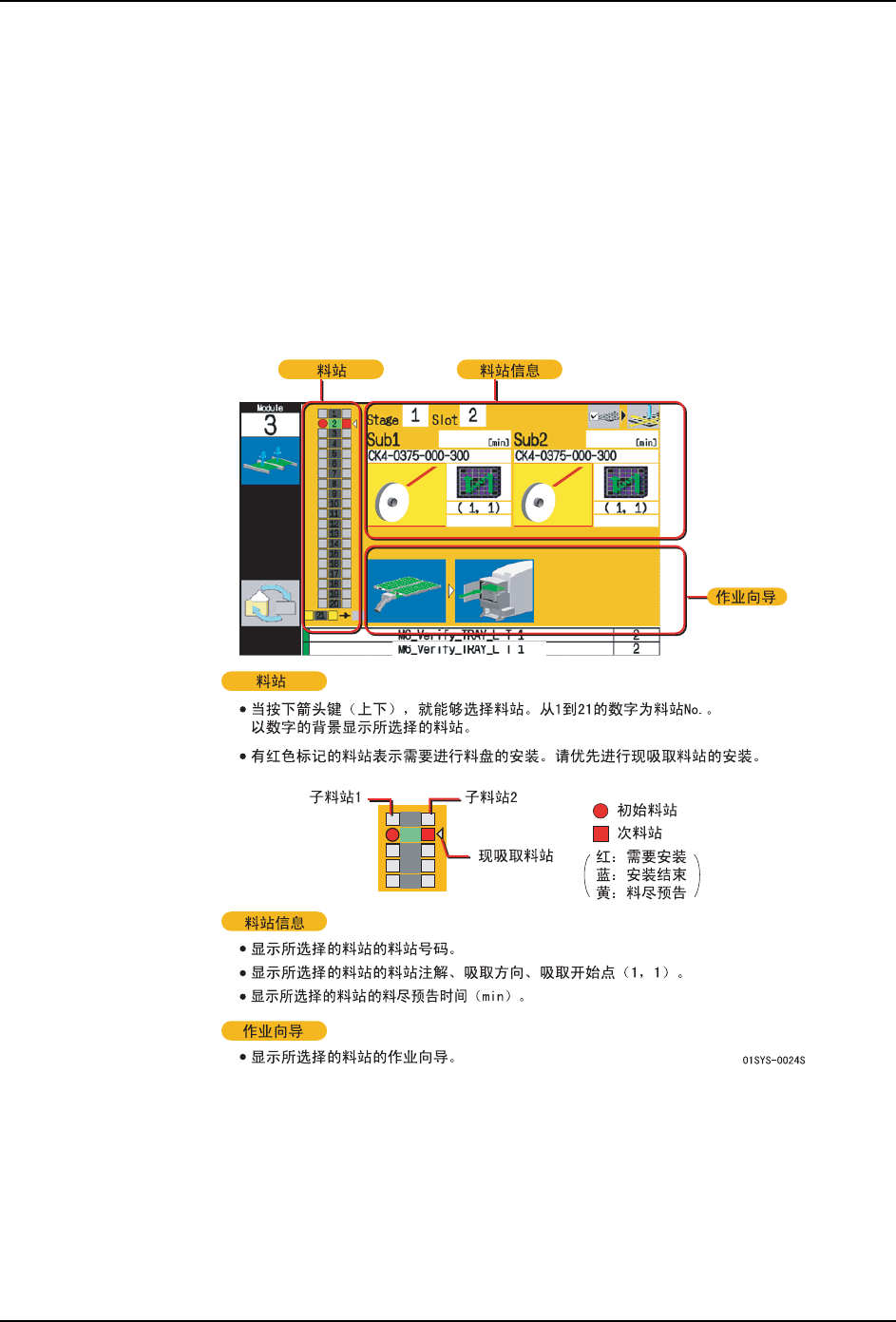 QD142-05 4. 生产 NXT II 系统手册 73 3. 设定结束后,请按下 OK 按钮。 · 如果在副料槽 2 上安装着料盘,那么,副料槽 2 的吸取点指定画面被显 示。 · 如果没有副料槽 2 或者副料槽 2 已设定结束,则返回到料盘更换画面。 备注 )按下 CANCEL 按钮后设定就会被取消。 通过 KIT Handy 进行指定 请在 KIT Hand y 上进行以下的操作。 1. 请 使用 KIT Handy 读取要安装…