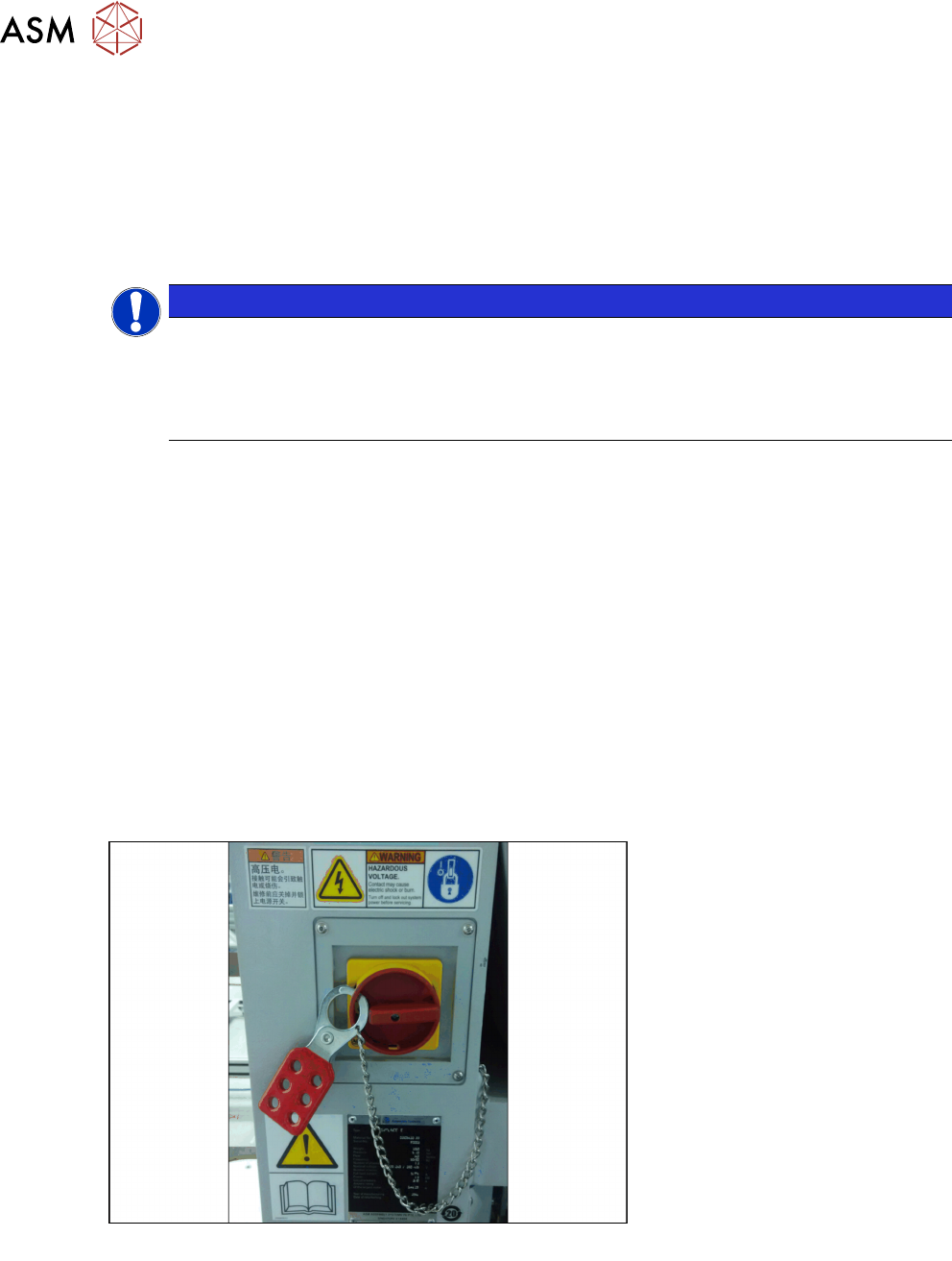 ð Attach a lock wherever possible (e.g. to the main power switch or the motor contactor).