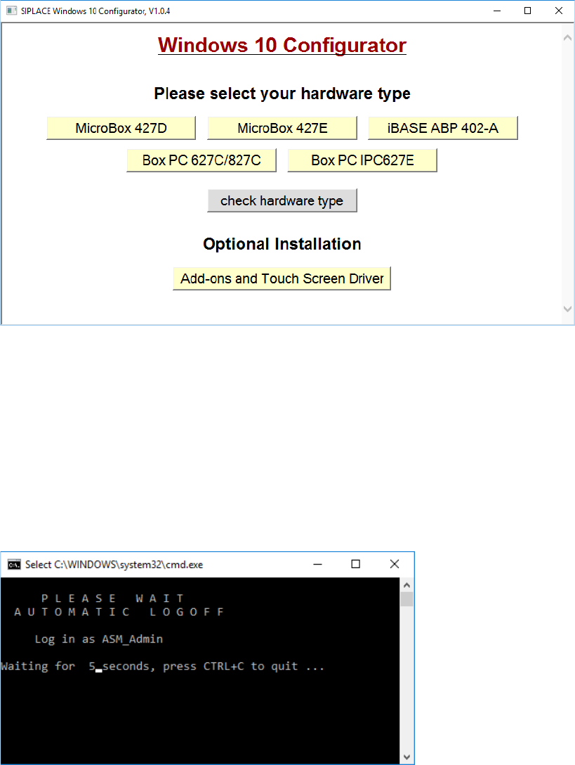Figure 4-6: Window "SIPLACE Windows Embedded Standard 7 Configurator"