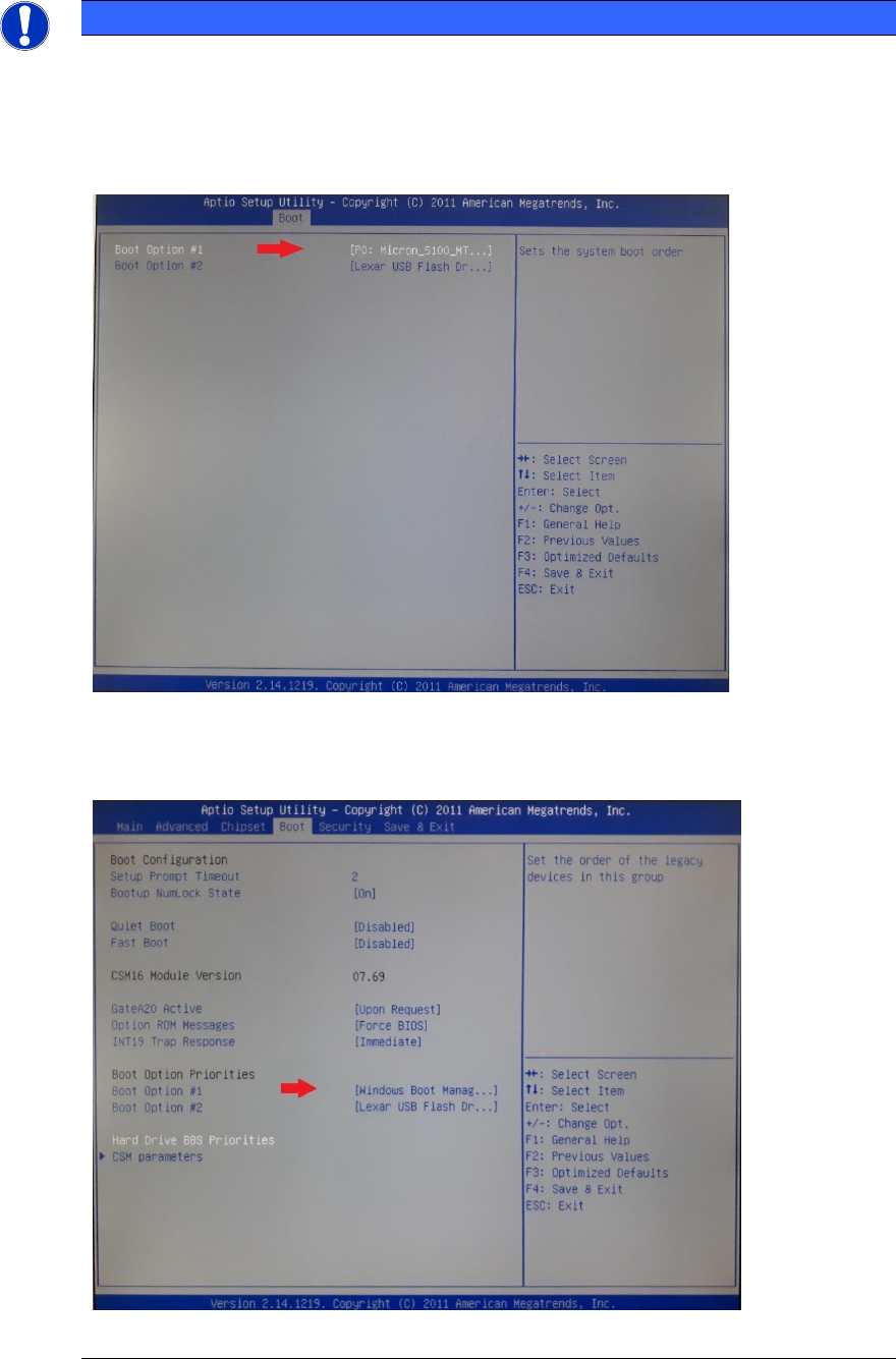 Stellen Sie vor Beginn der Arbeiten sicher, dass im BIOS in der Start-Reihenfolge die
