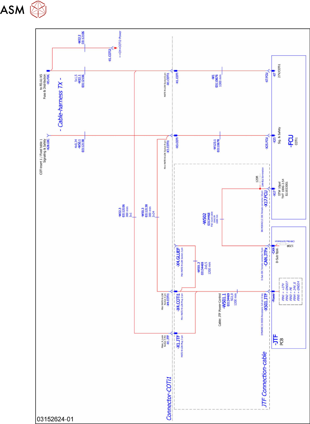 ► Connect the power cable [03134469‑xx] to connectors X1.JTF and X4.COTi1 at the cable har-