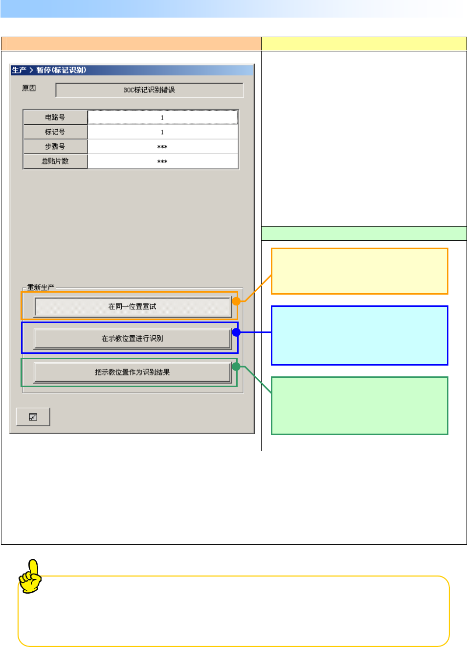 BOC 标记、基准领域标记识别错误时,显示如下画面,装置暂停。
