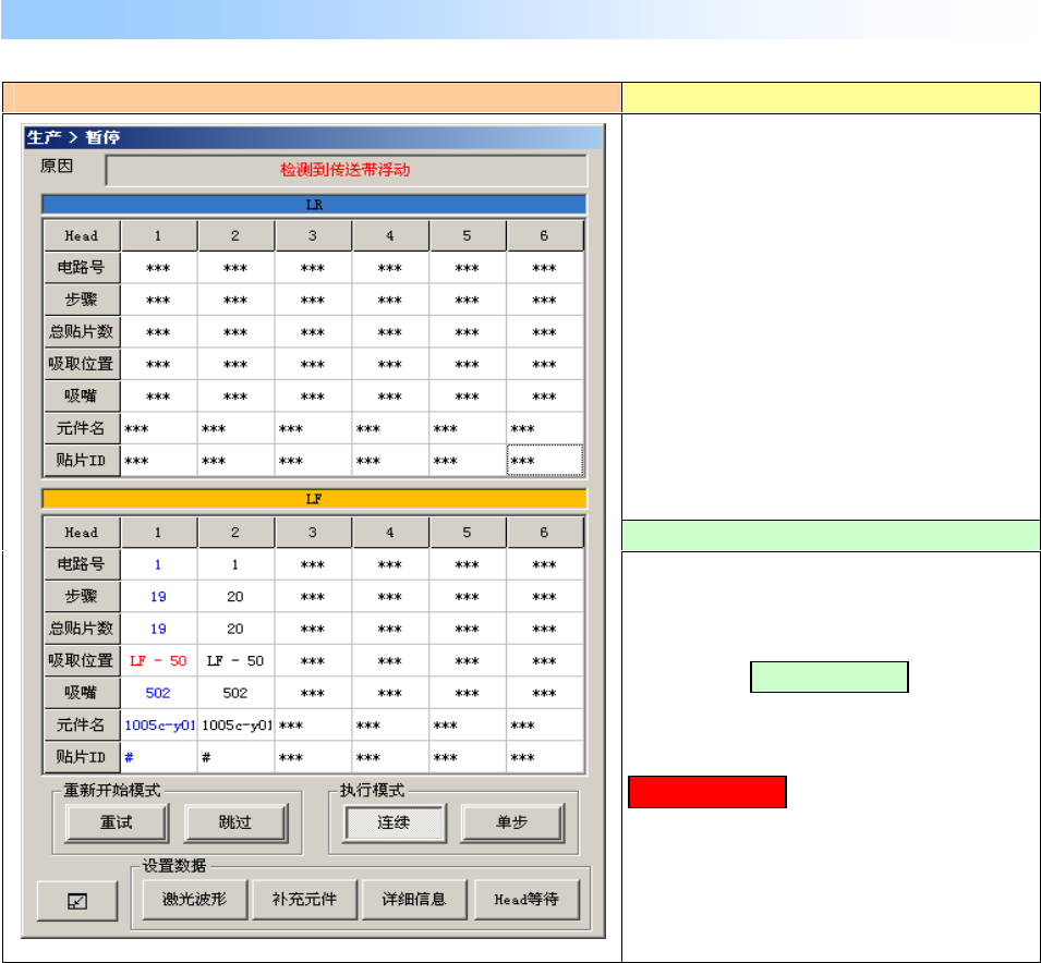 生产运行中(XY 轴移动中)传送带浮动时,显示如下画面,生产异常停止。