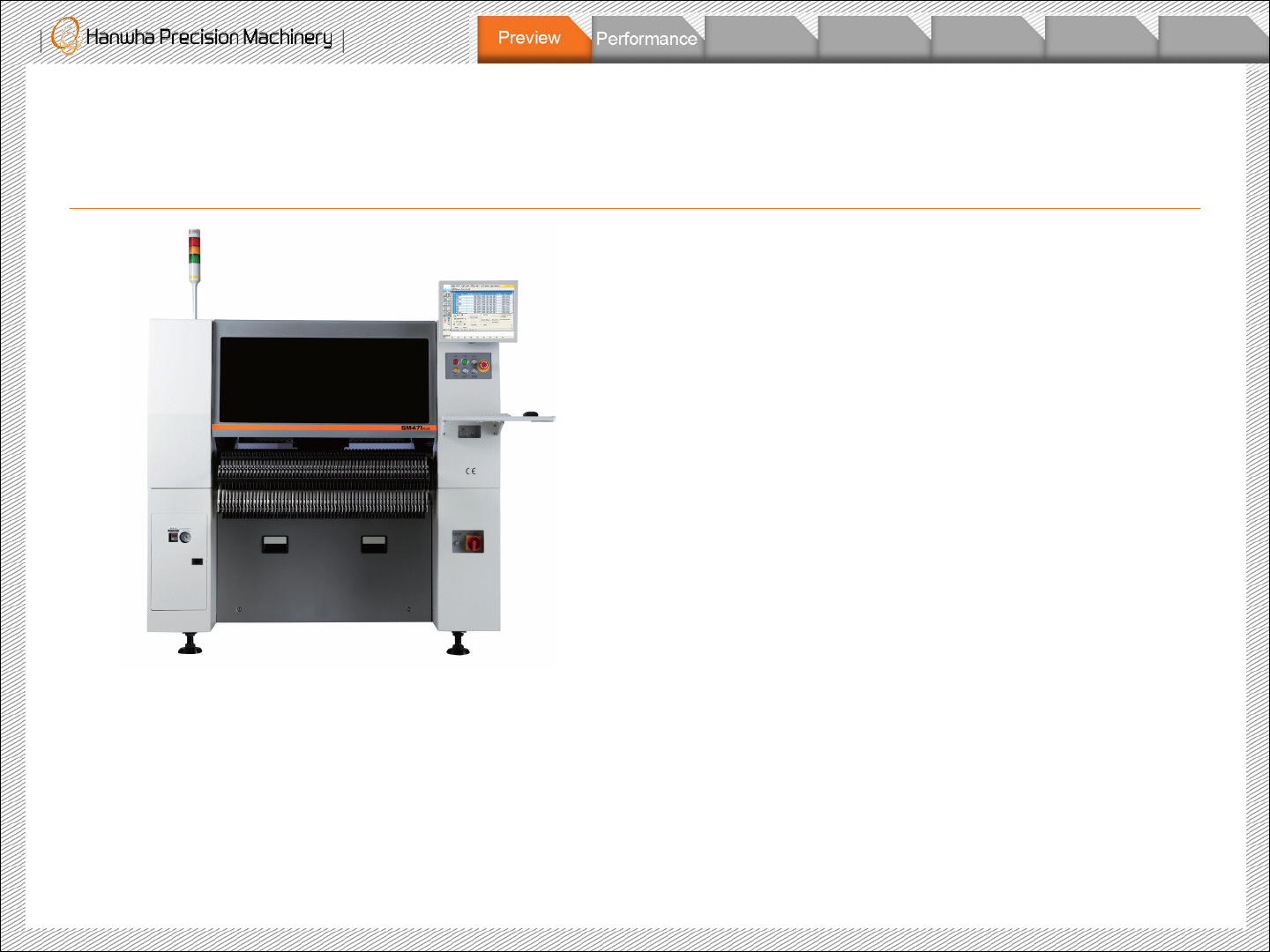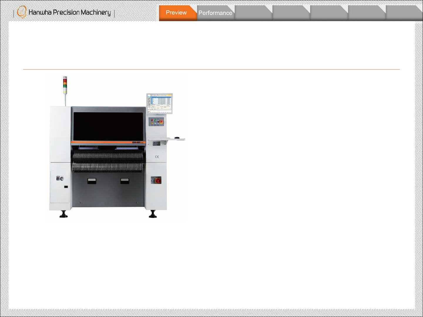 Copyright ⓒ 201 7 Hanwha Precision M achinery Co., Ltd. a ll rights reserved. Summar y ▌ High Perform ance - 更改 X 、 Y 轴马达:速度 相比于 SM 481 提高了 2.6% ▌ High Reliabi lity - 利用 Fl y Camer a 检查吸嘴 状态 - Accura cy: ± 40u m, Cpk≥ 1.…