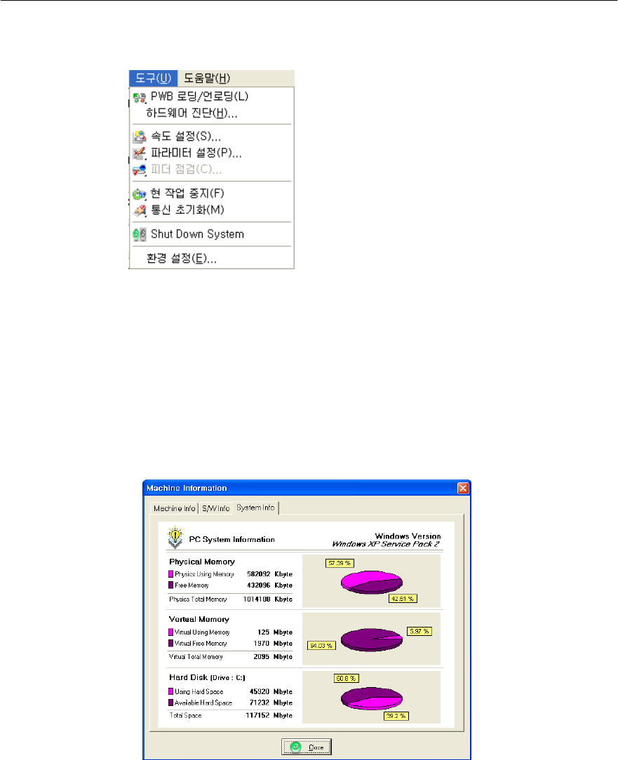 - Machine Info, S/W Info, System Info是检查当前system状态的窗口。