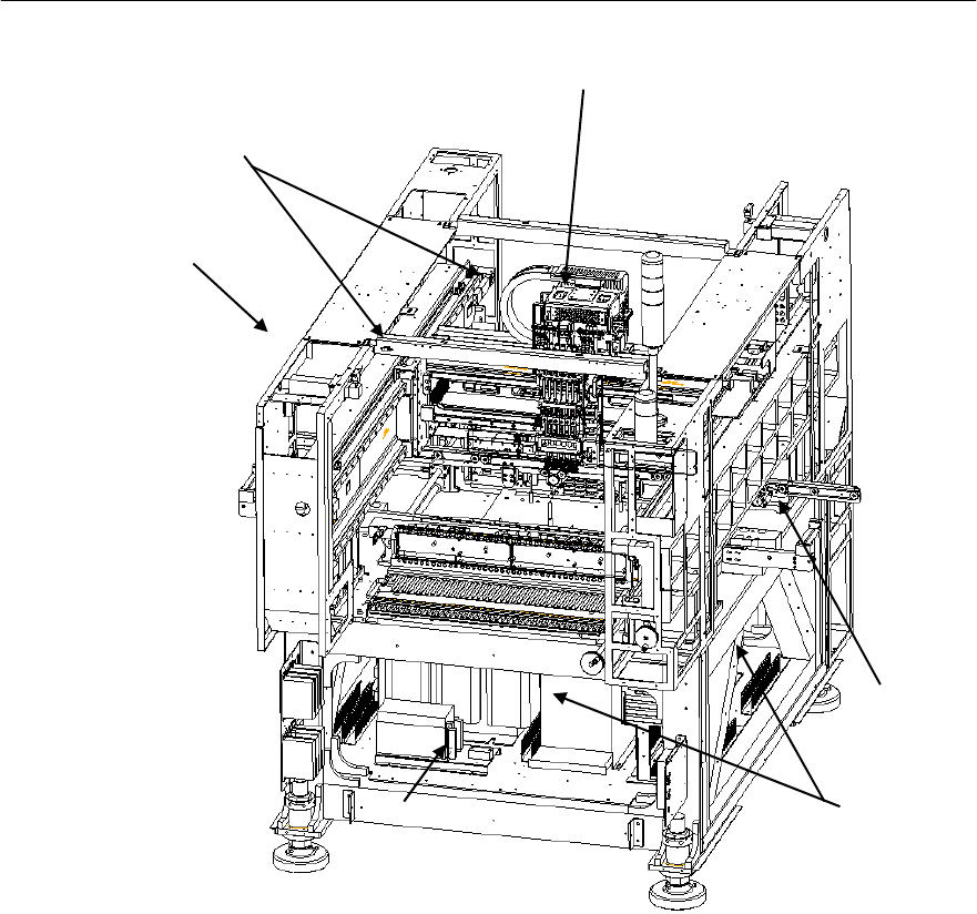 제 2 장 장비의 개략적 설명 2-3 Mx100/P,200/P/TP 装备内部主要部件名称 1.Main Frame :根据三 维结构解释进行优化设计,确保 了高强度和低震动。 2.X-Y Gantry :使用了单边 Linear Motor 及 Opti cal Linear Enc oder ,实现高速、高精度配 件吸附,起到移动至指定 的 XY 位置,以便进行 Vision 确认、配件安装等的 作用。 3.Conveyor …
