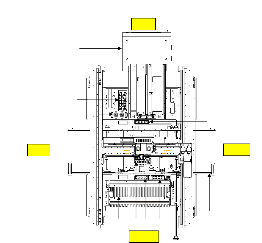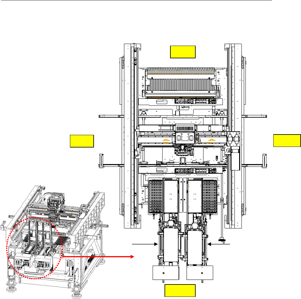 제 2 장 장비의 개략적 설명 2-5 Mx100P,200P/TP 装备内部主要部件名称 ① HEAD ASSY Mx100P: 2 PRECISION(2 个 精密H E A D ) Mx200P: 4M+1P(4 个普 通 HEAD+1 个 精 密 HEAD),Mx200TP: 3 P(3 个 精密H E A D ) ② CONVEYOR ASSY( 接驳台 ): 410(W)x460(D), Option: 宽度自动调节 ③ …